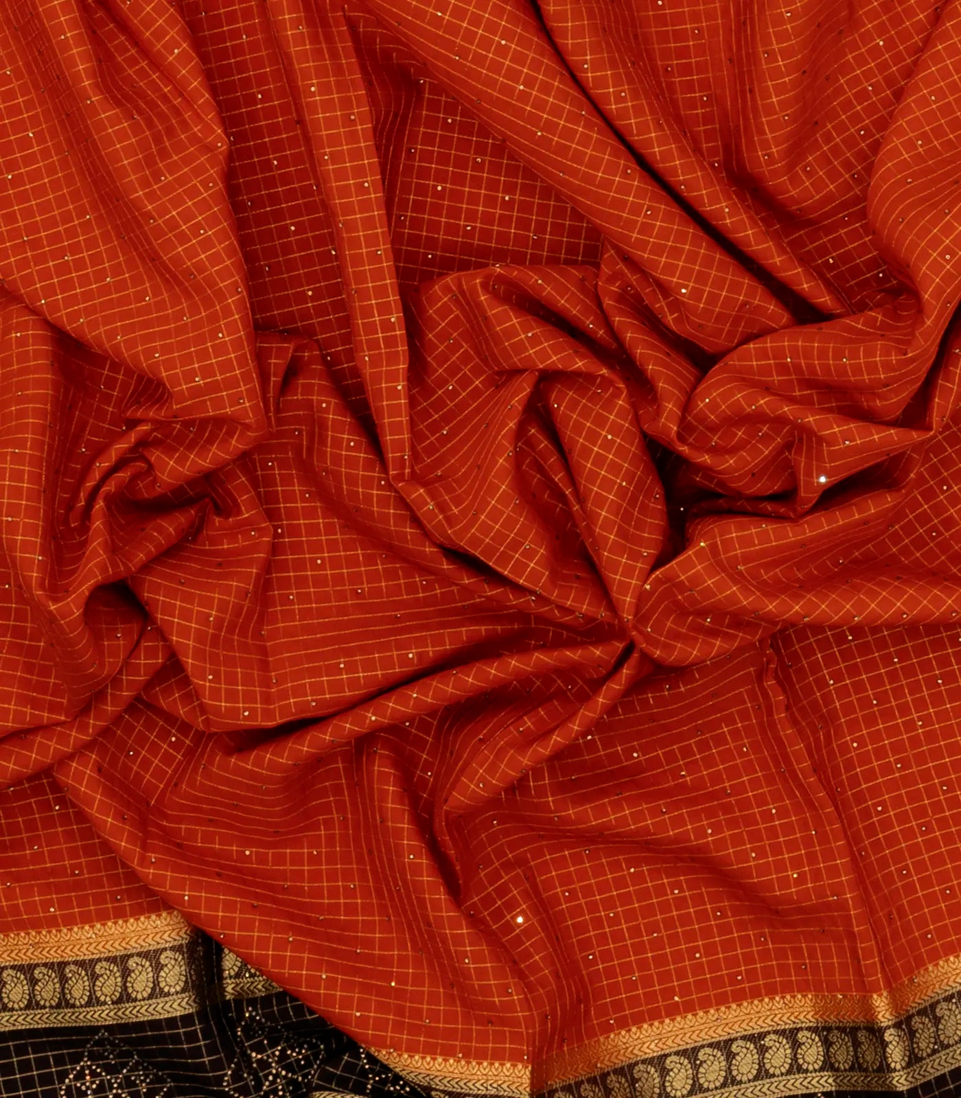 Rust Woven Art Crepe Saree With Stone Work & Contrast Border-BL5140