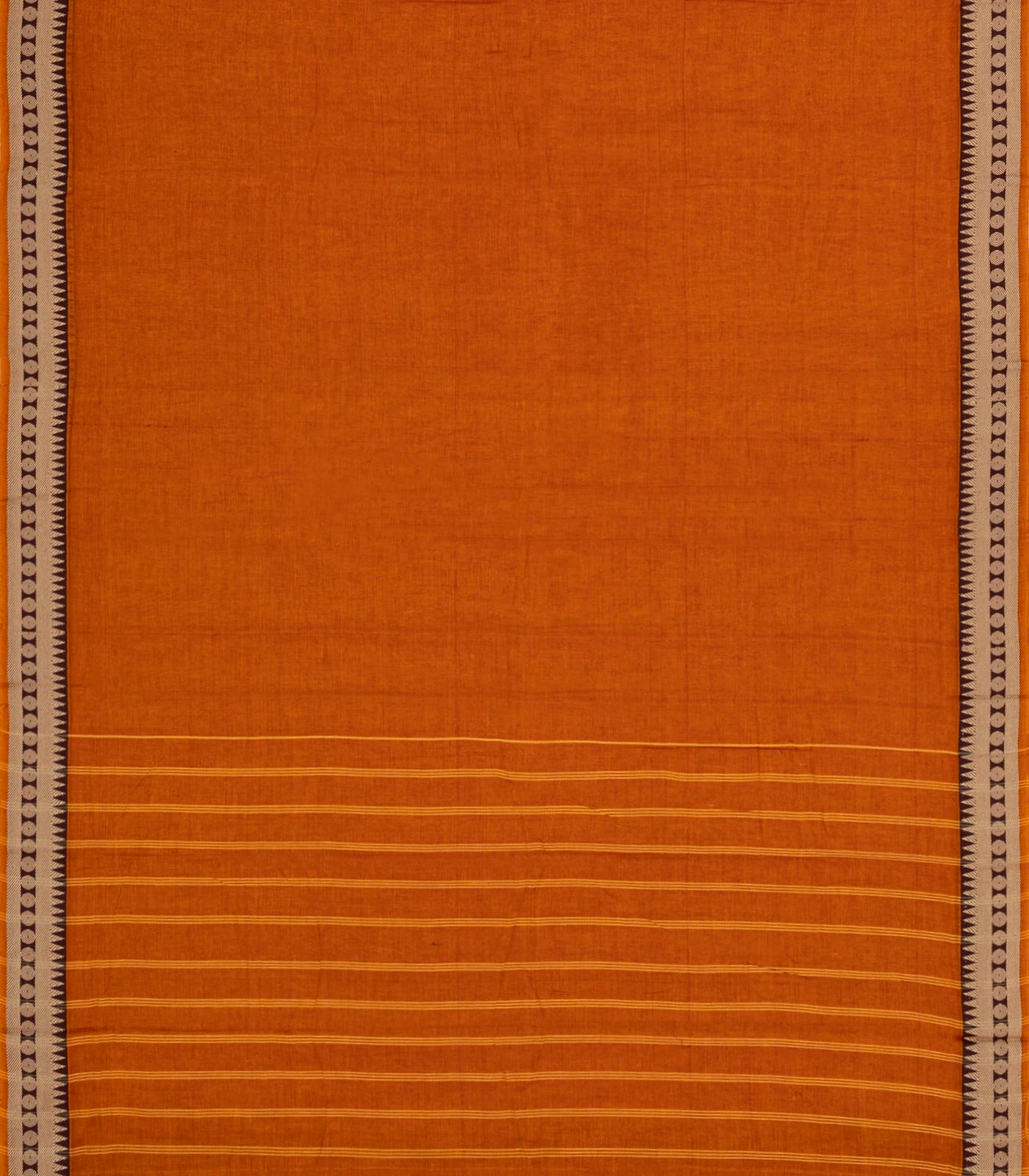 This woven chirala cotton saree is filled with plain rust body along with traditional border and pallu