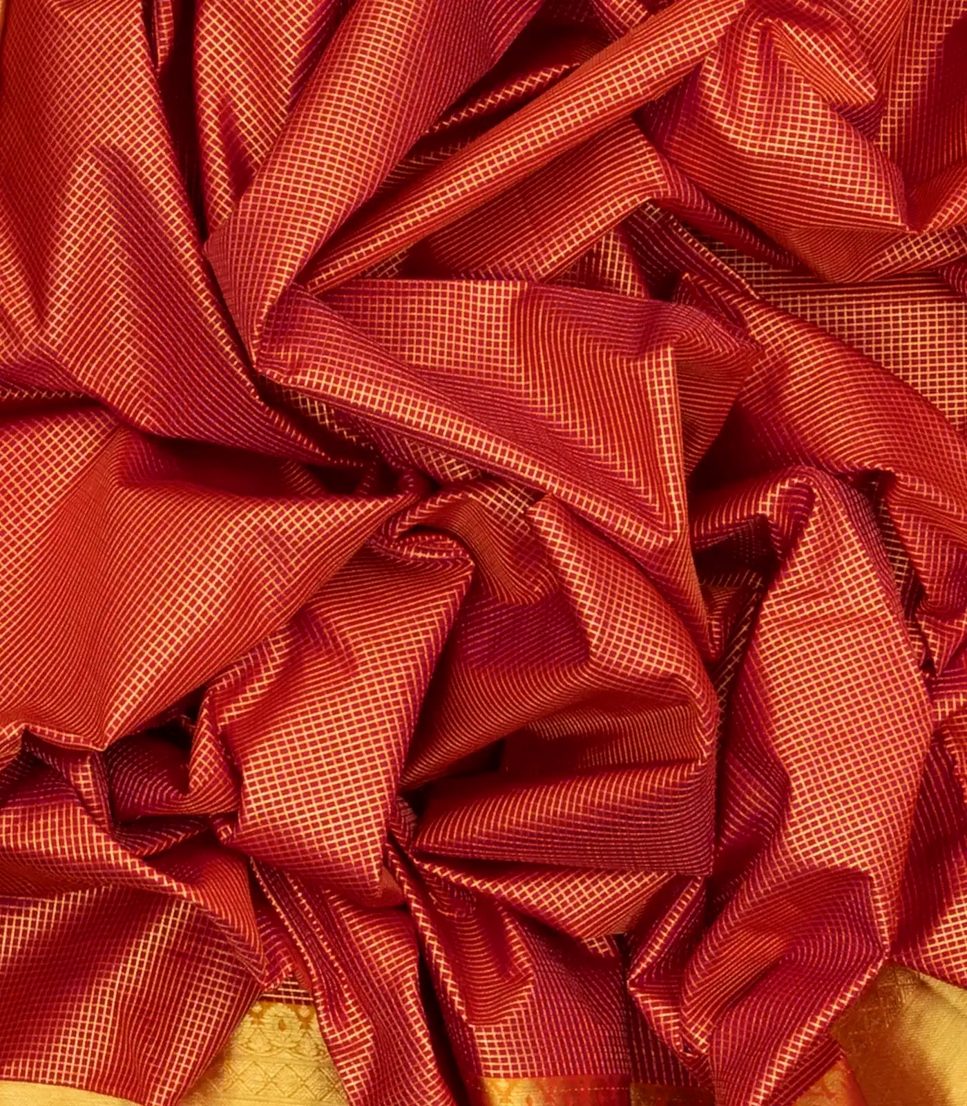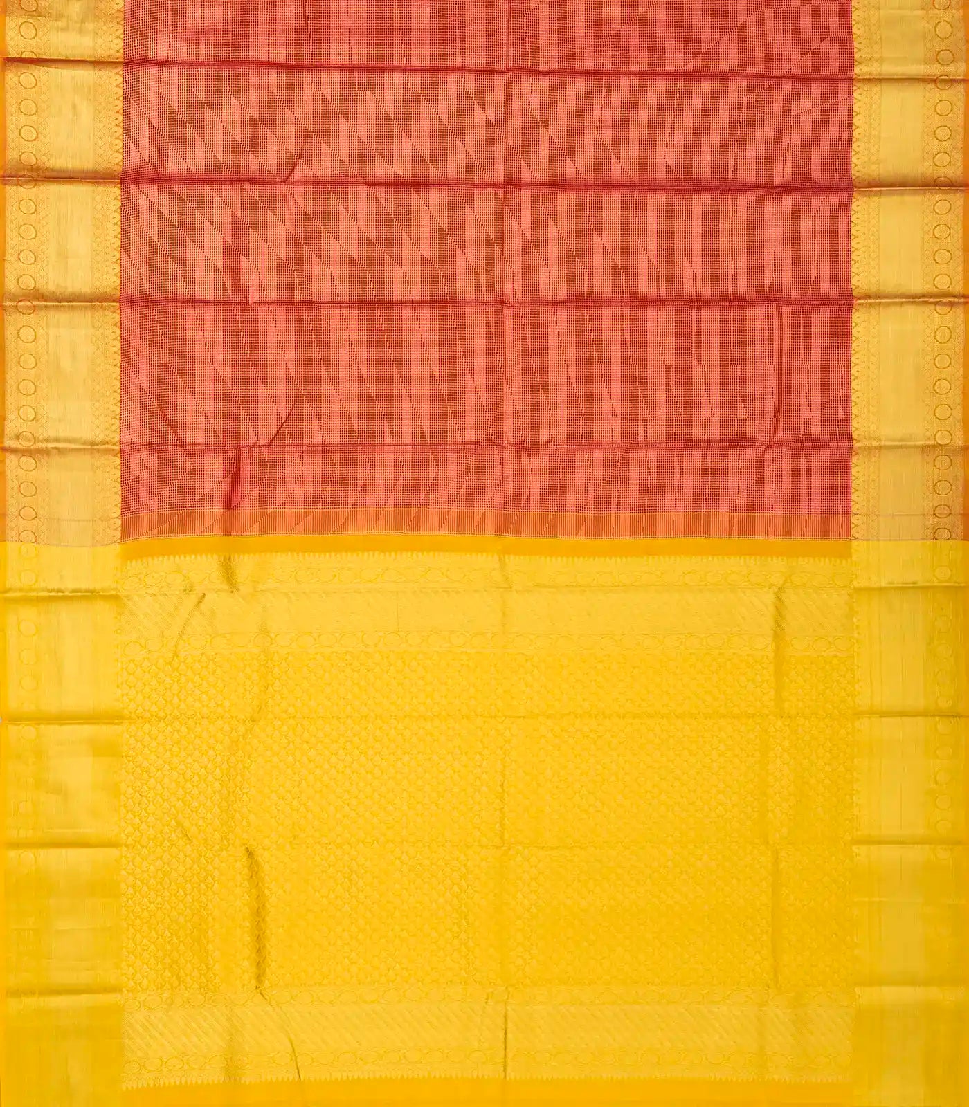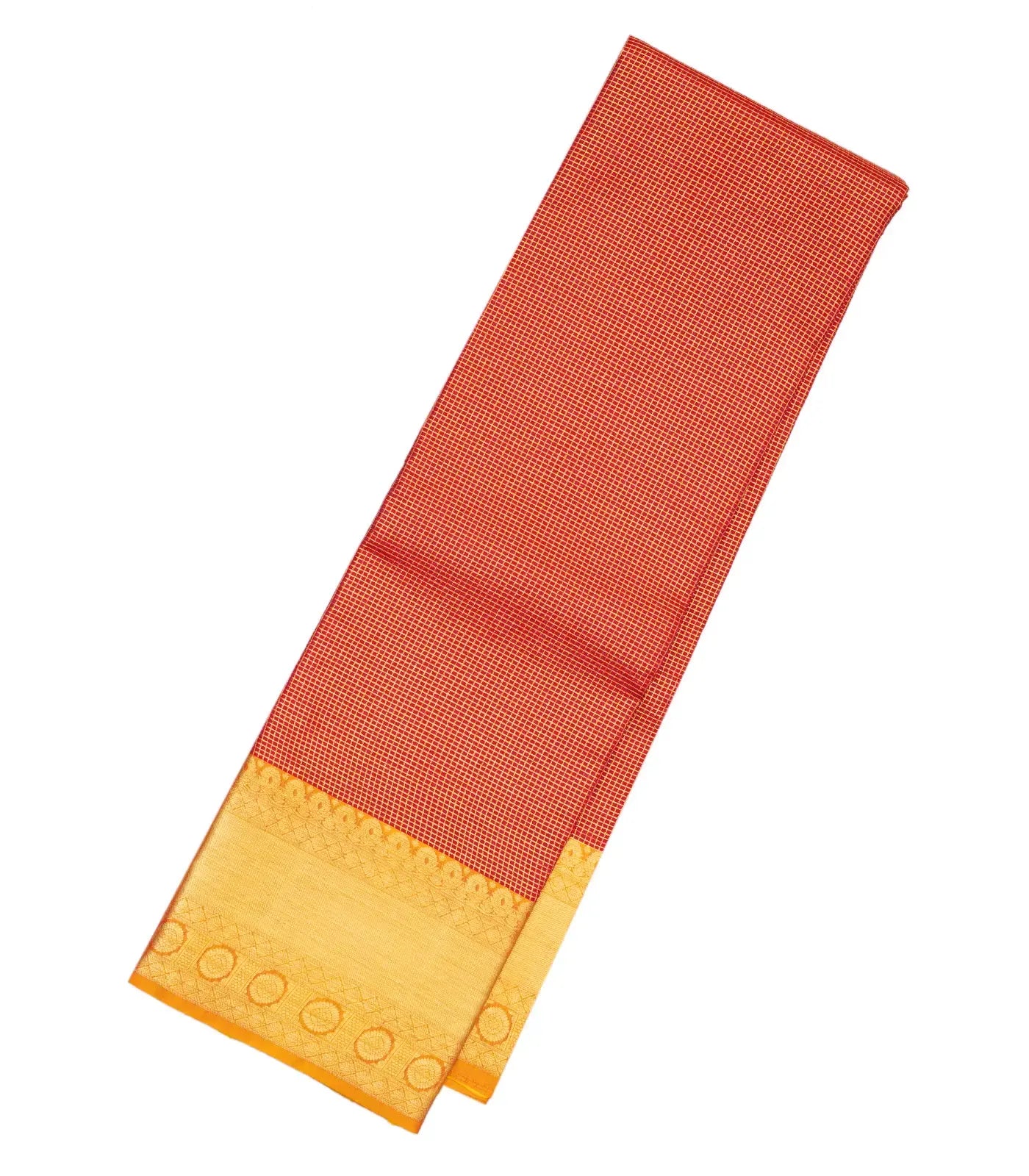 Rust Woven Silk Saree With Zari Checks & Mustard Border-EC2476
