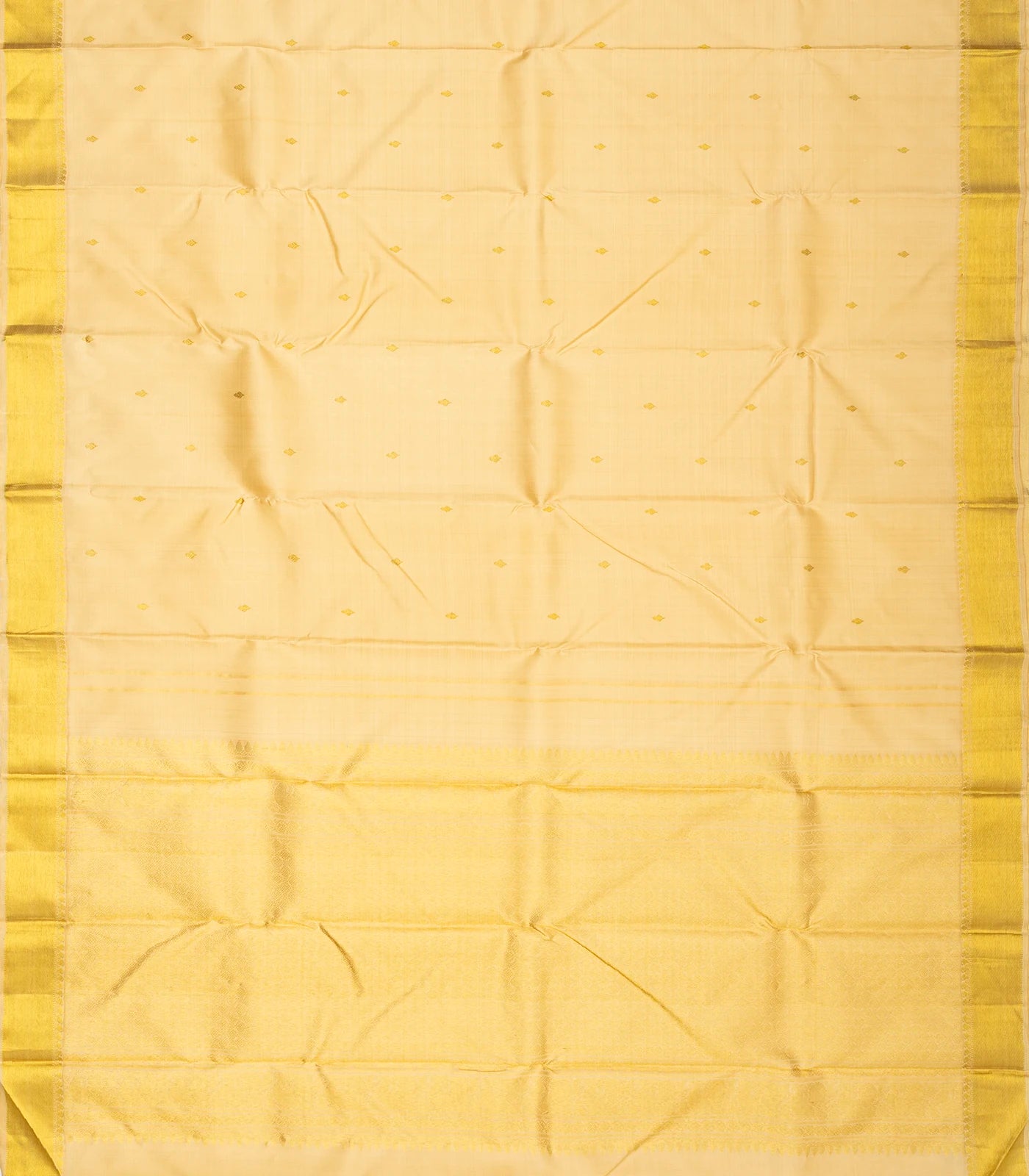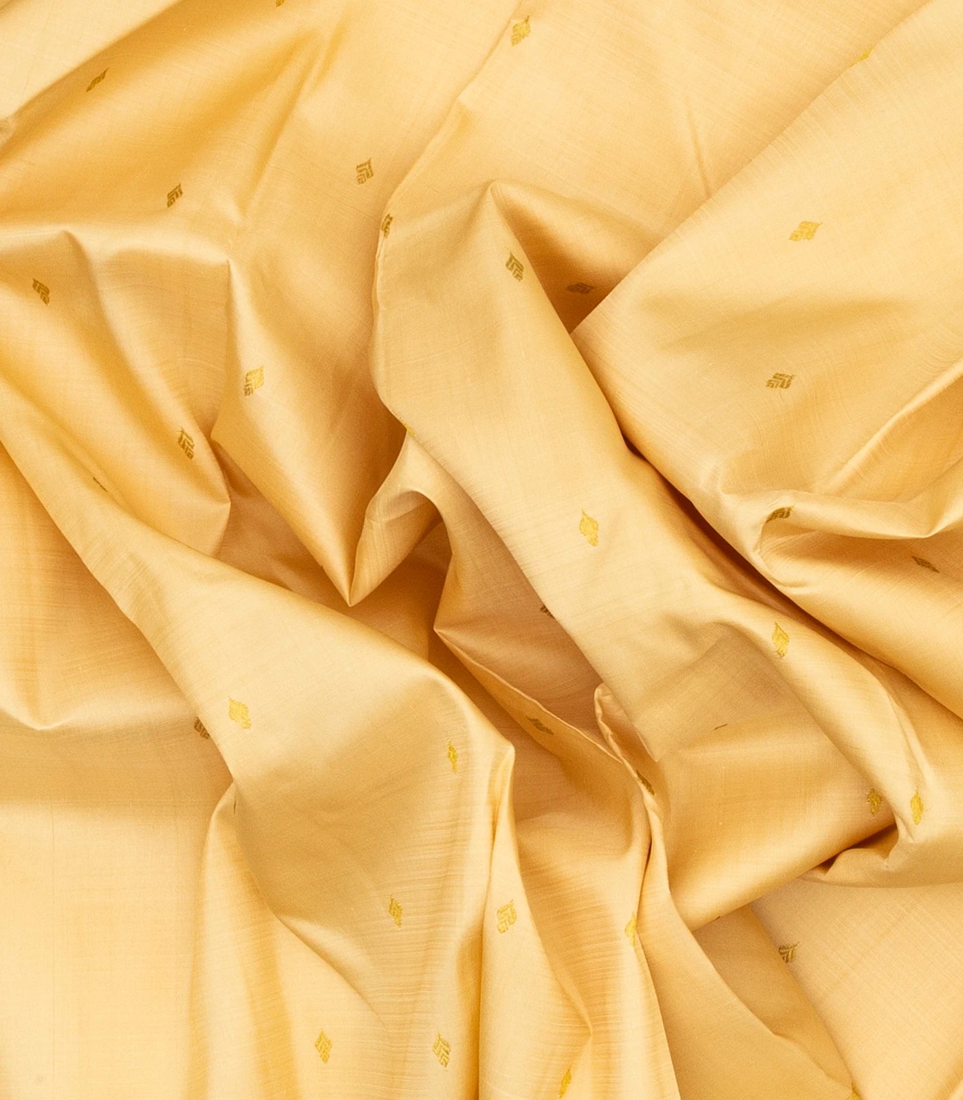 This handwoven kanchipuram silk saree is filled with zari buttas in sandal body along with zari border and pallu