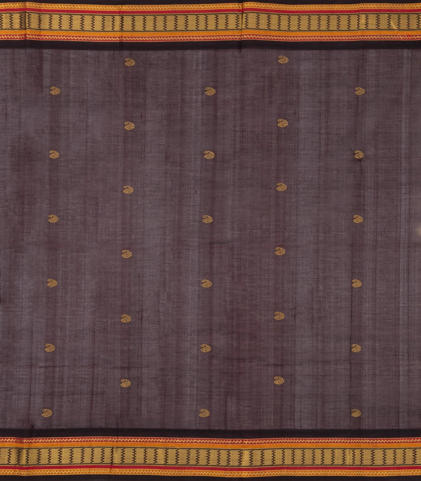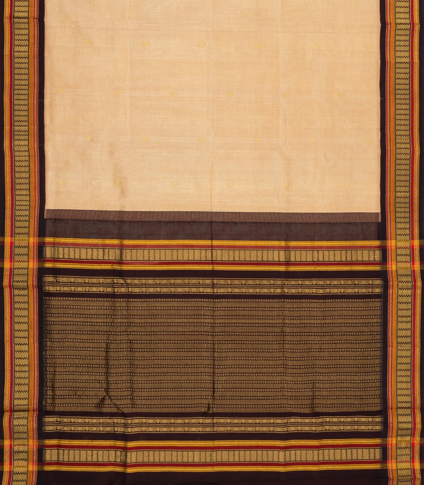 Sandal Handloom Korvai Silk Cotton Saree With Floral Buttas & Contrast Border-SC3829