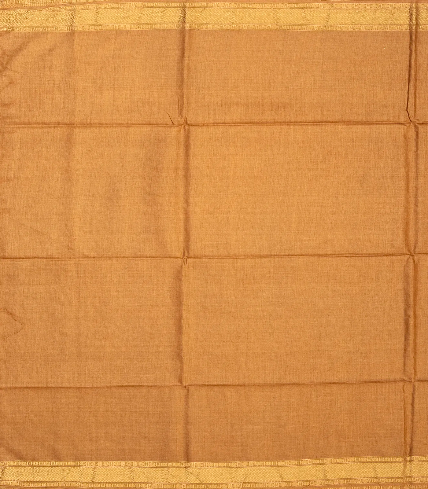 Sandal Woven Tussar Silk Saree With Floral Motifs-TU2558