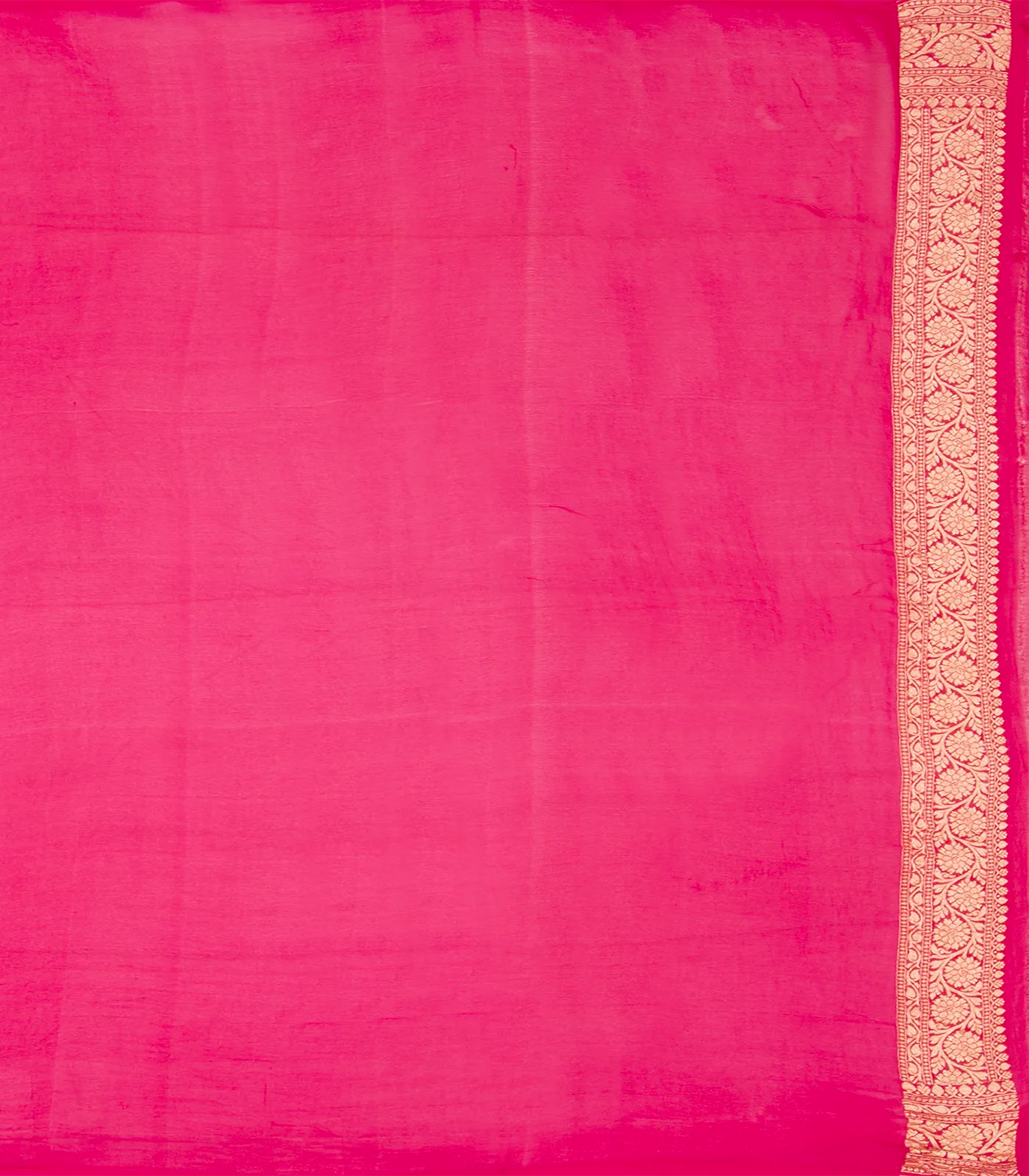 Sea Green Handloom Banarasi Khaddi Georgette Saree With Floral Motifs & Pink Border-Sea Green