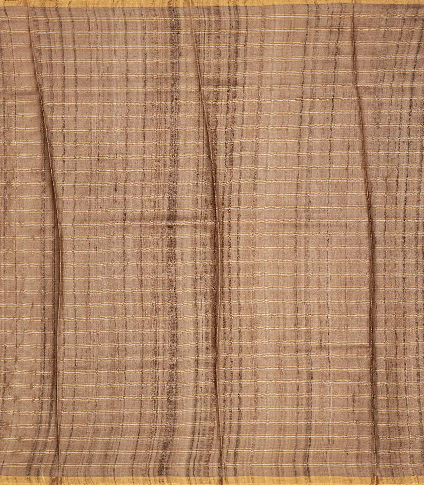 This handwoven tussar silk saree is printed with floral vine motifs in sea green body along with border and pallu