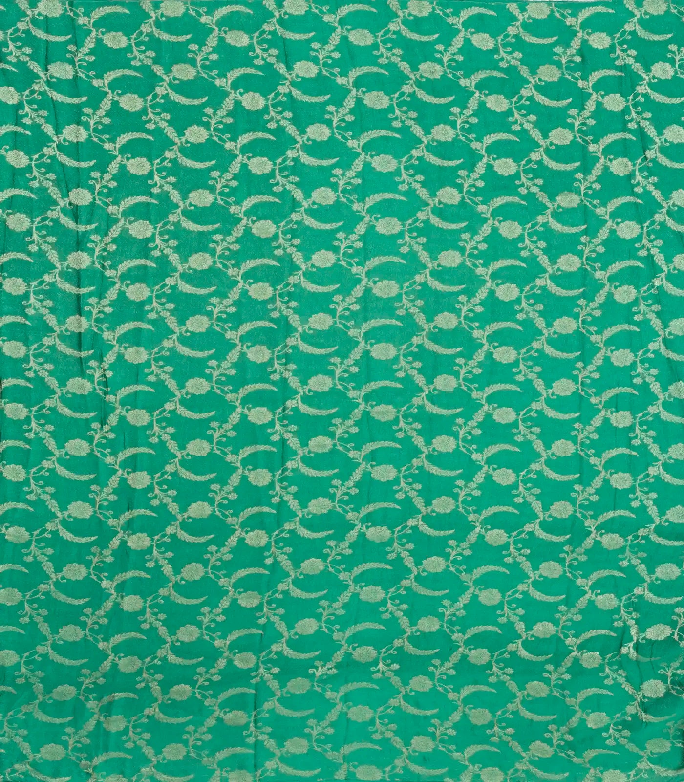 This pure mysore georgette silk saree is filled with plain sea green body along with floral zari motifs in border and pallu