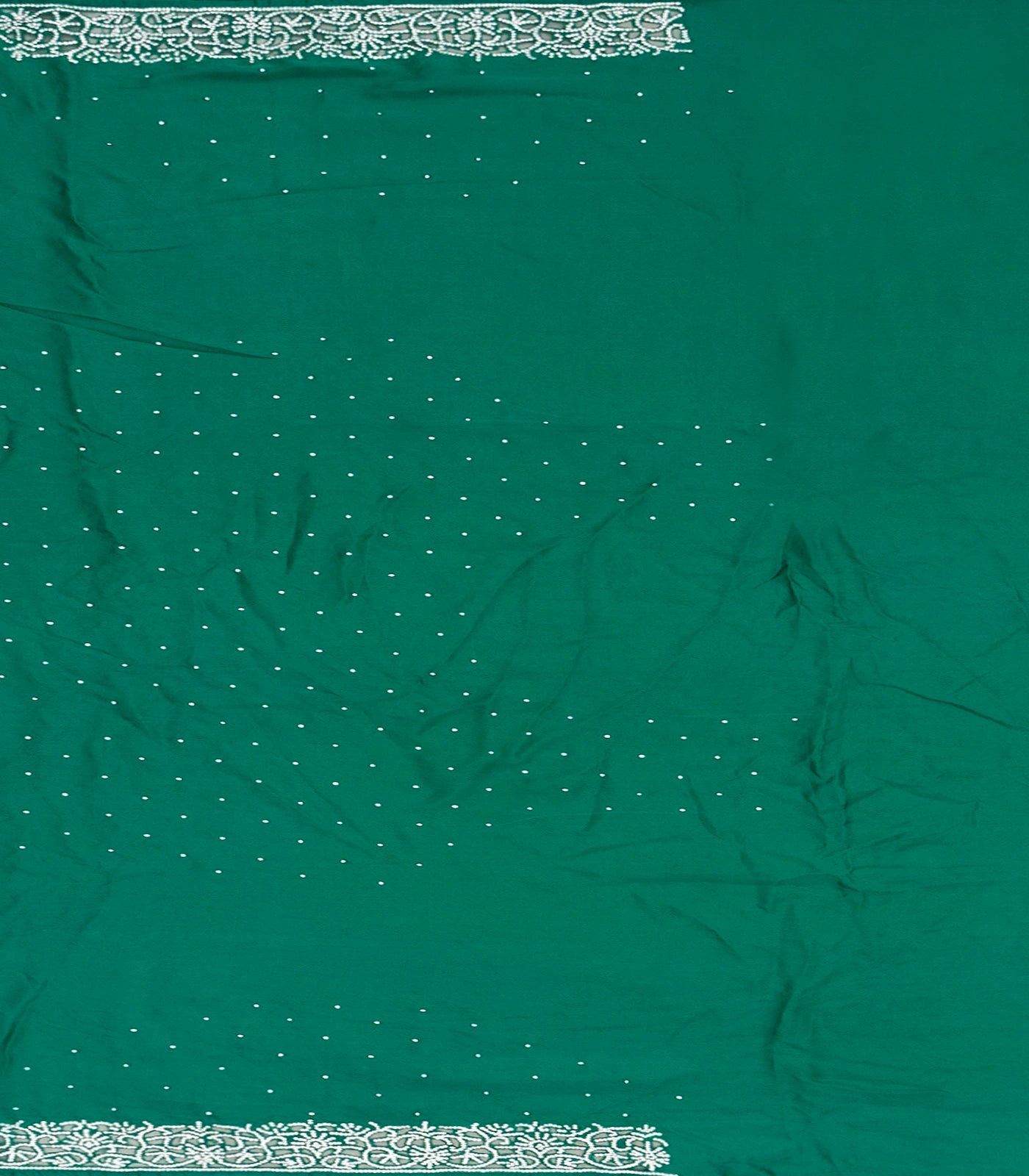 Sea Green Pure Crepe Embroidered Saree With Dotted Motifs-Sea Green