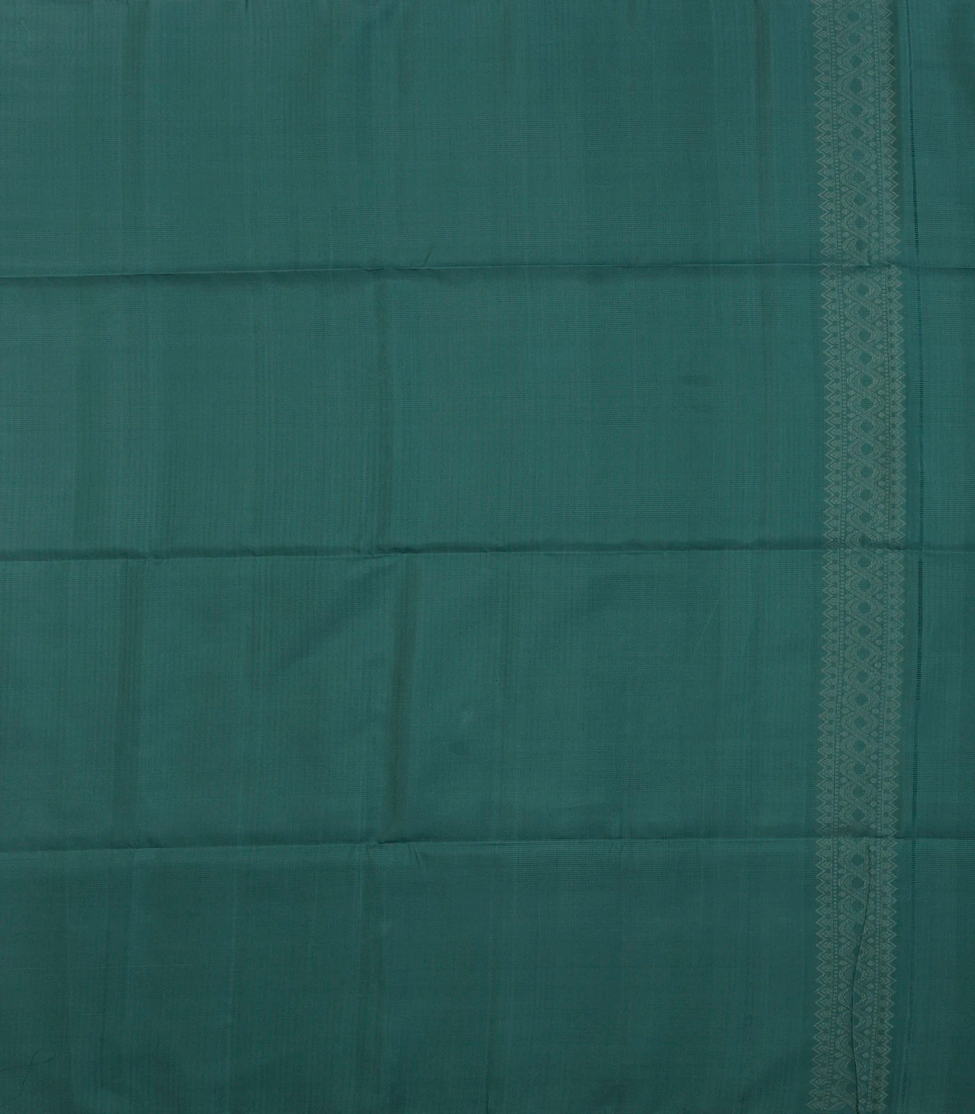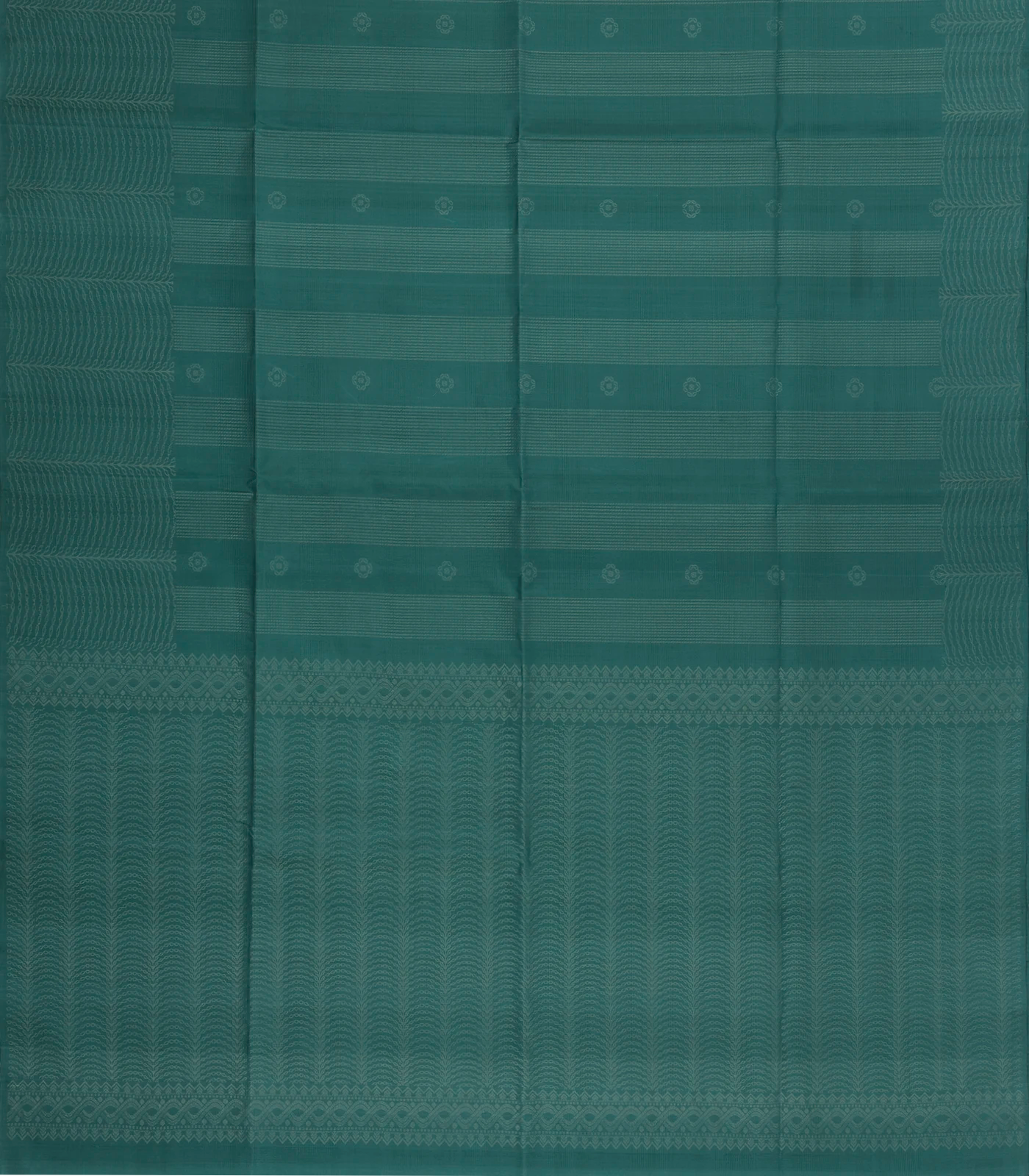 This handwoven soft silk saree is filled with floral motifs & stirpes in shadow green body along with border and pallu