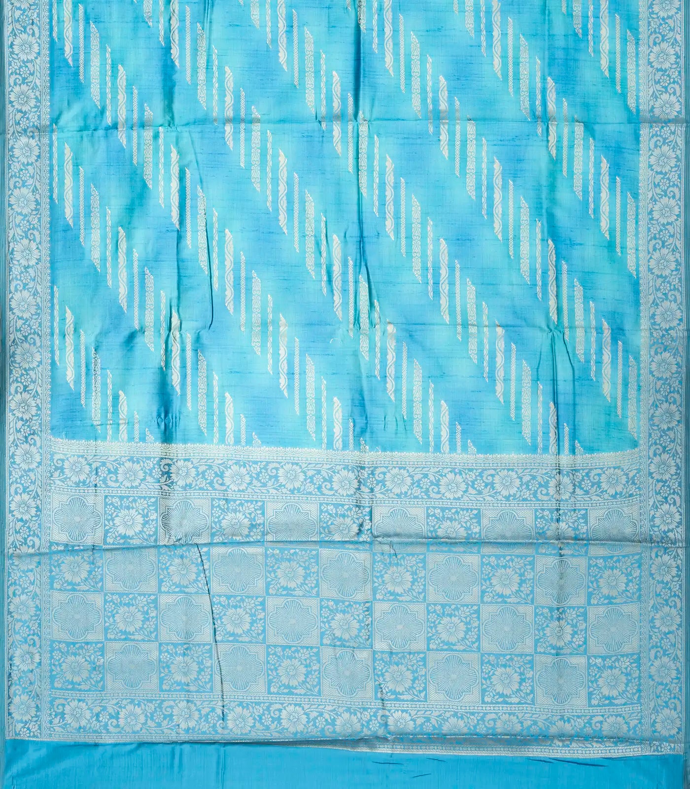Sky Blue Woven Synthetic Tussar Silk Saree With Floral Motifs-BL4145