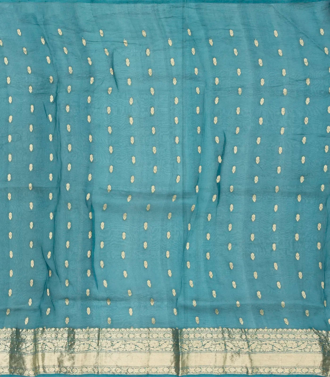 This handwoven banarasi organza silk saree is filled with floral motifs in steel blue body along with border and pallu