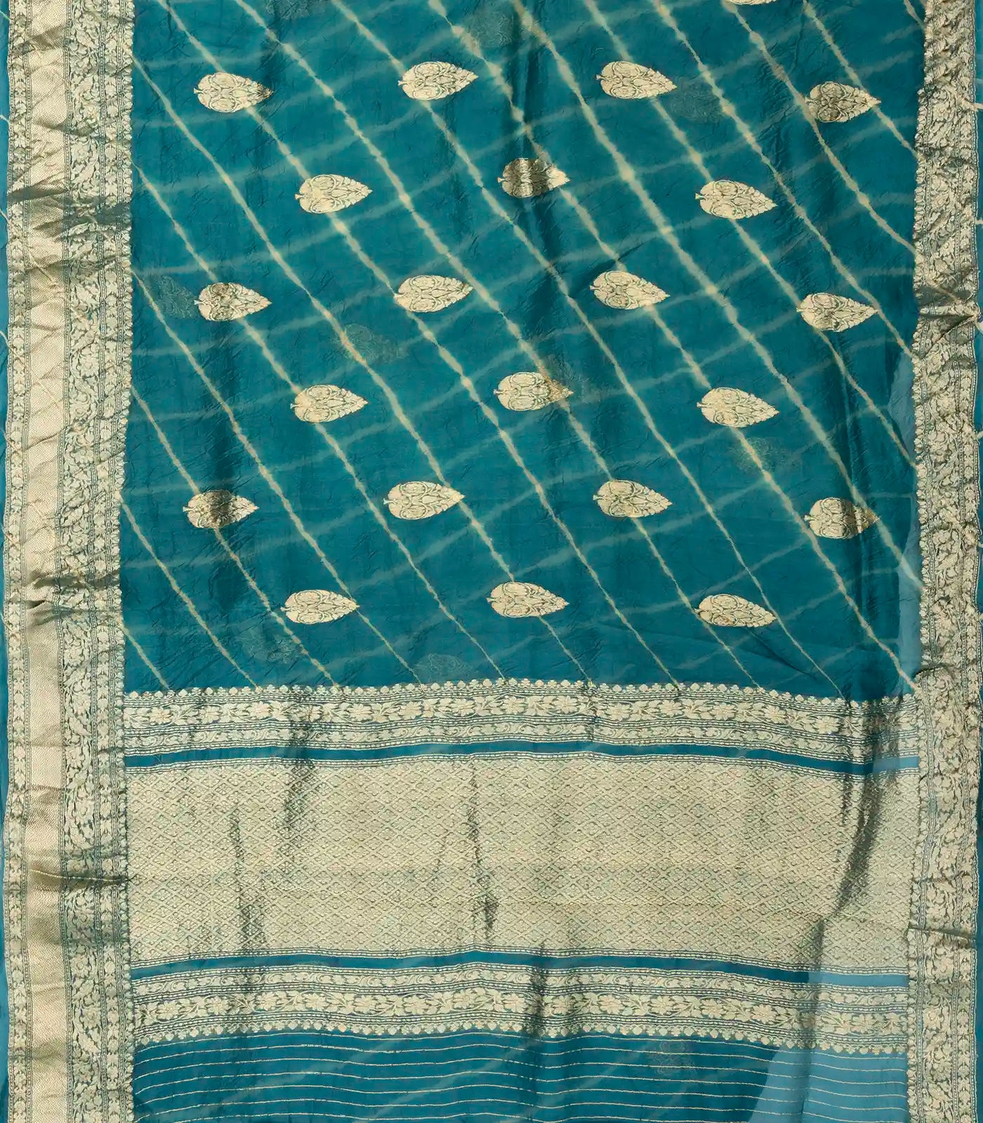 Steel Blue Handloom Banarasi Organza Tie & Dye Silk Saree With Floral Motifs-BE1286