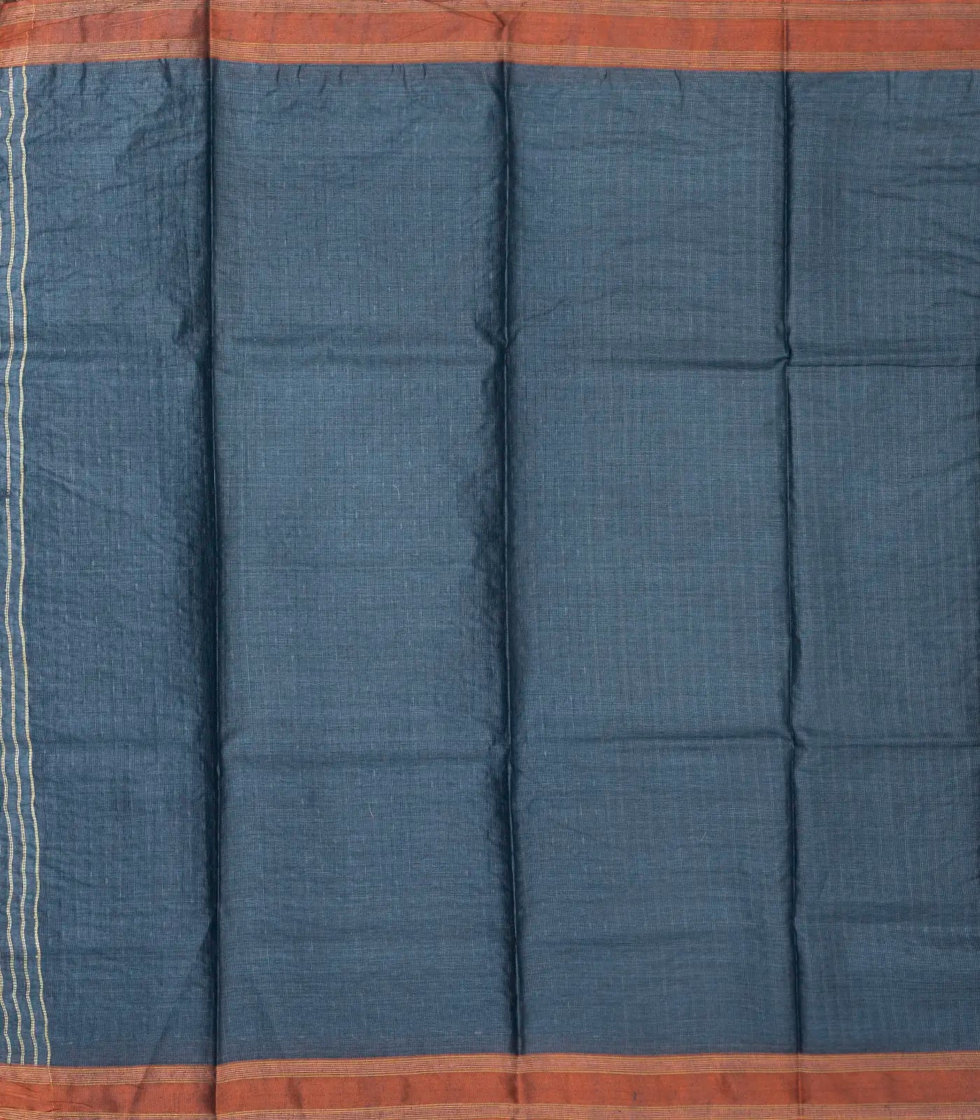 Steel Blue Handloom Tussar Silk Saree With Contrast Border-TU2593
