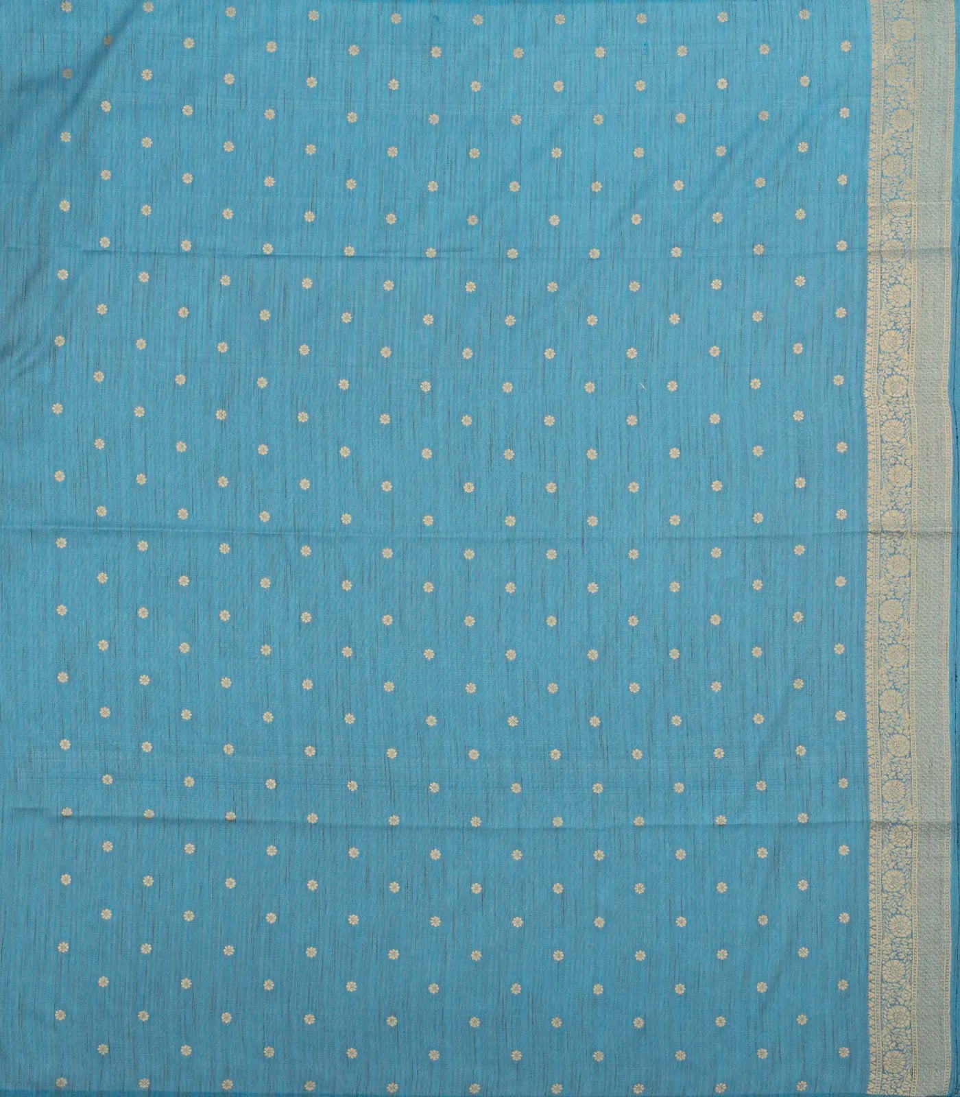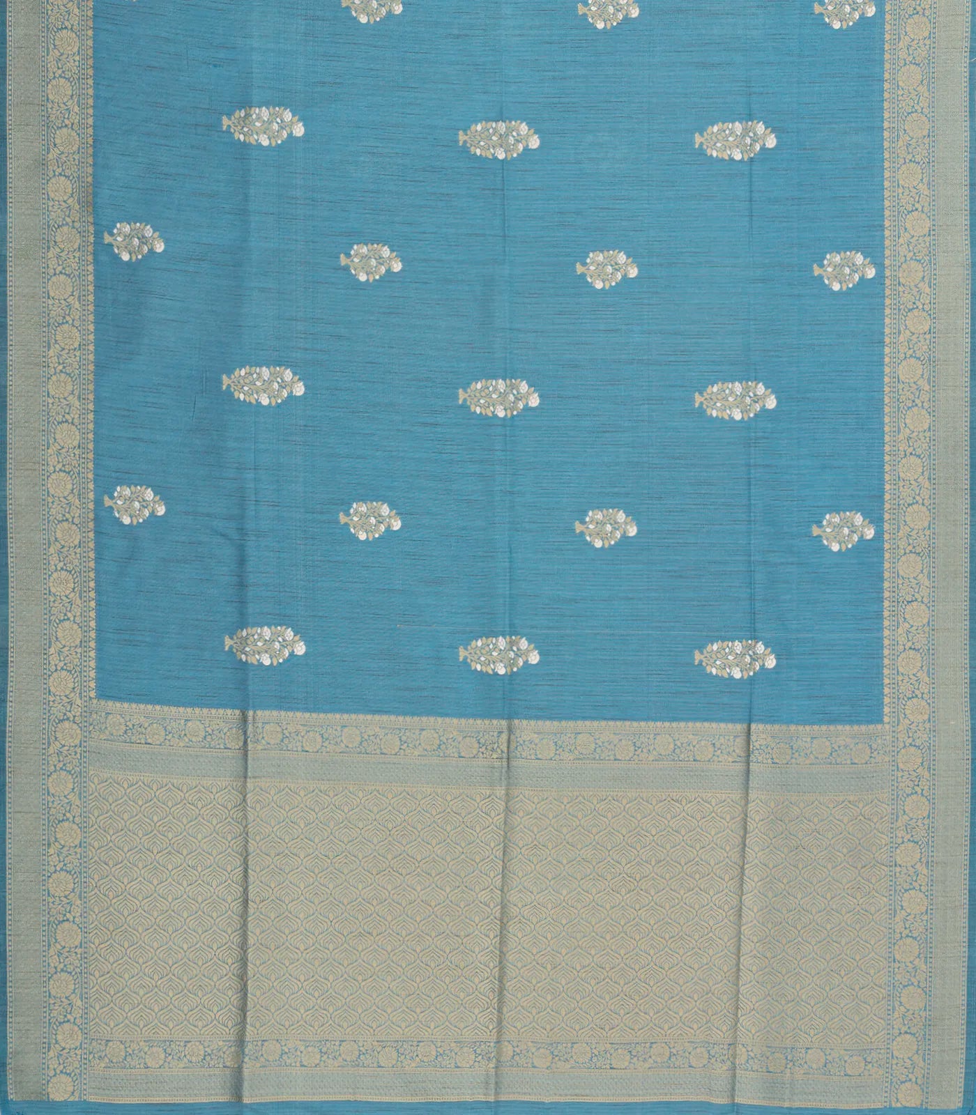 This woven art dupion saree is filled with floral motifs in steel blue body along with border and pallu