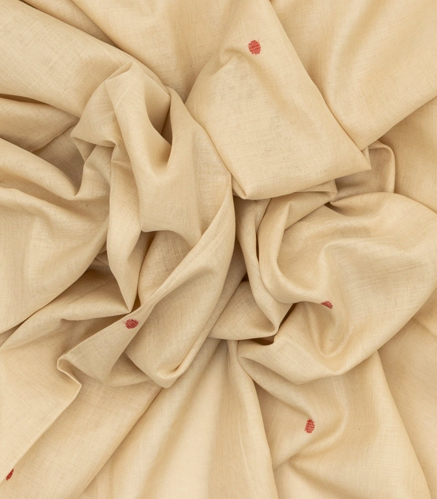 Taupe Handloom Bengal Cotton Saree With Coin Buttas