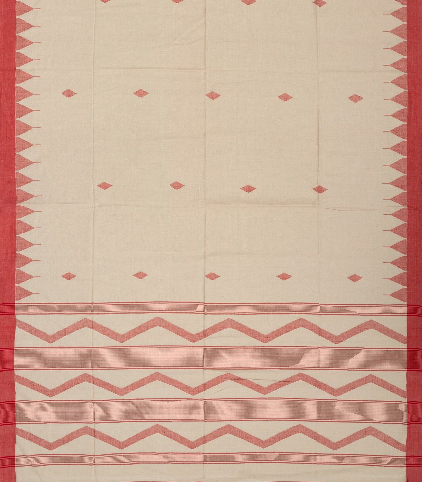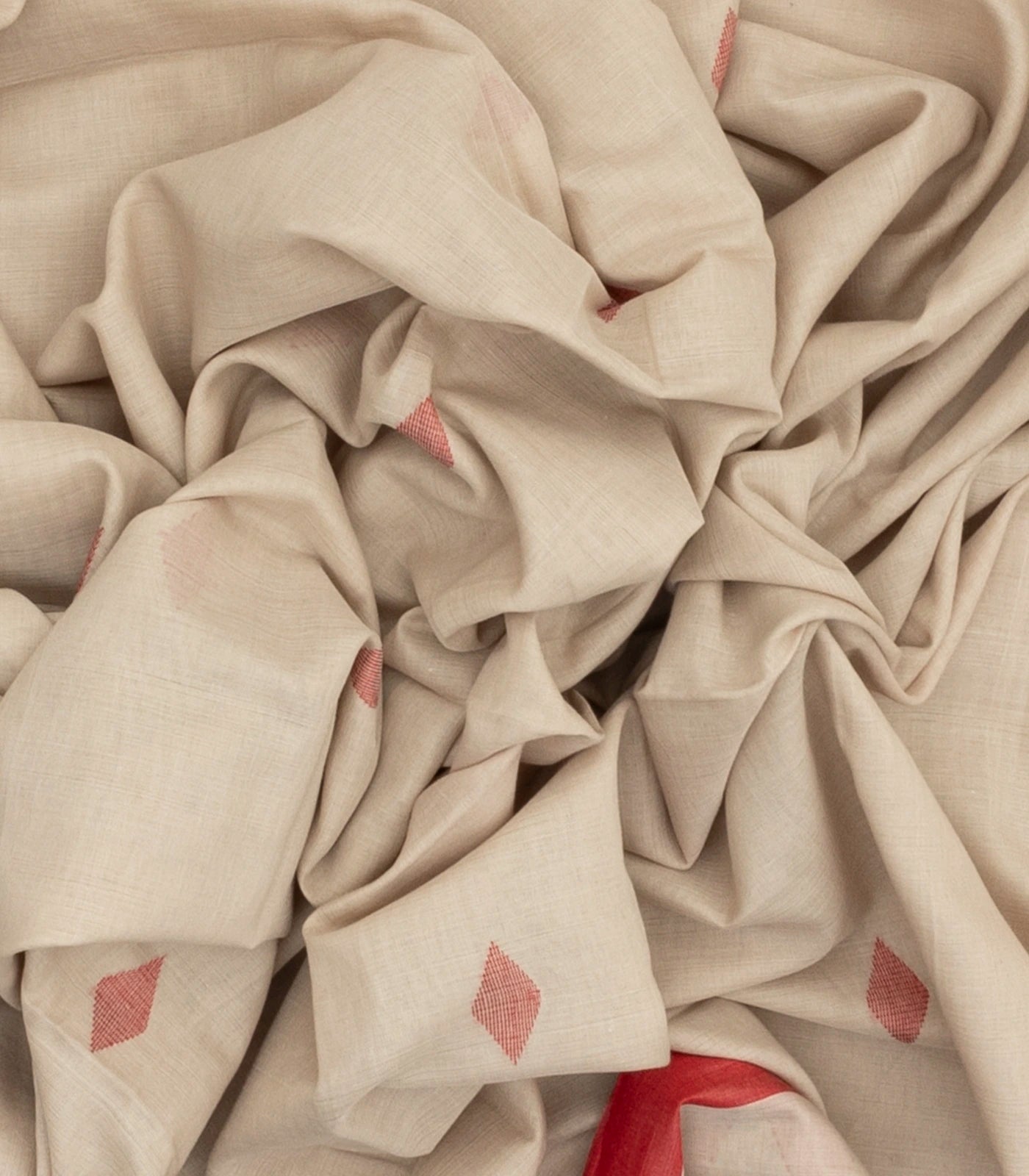 This handwoven bengal cotton saree is filled with diamond buttas in taupe body along with contrast border and pallu