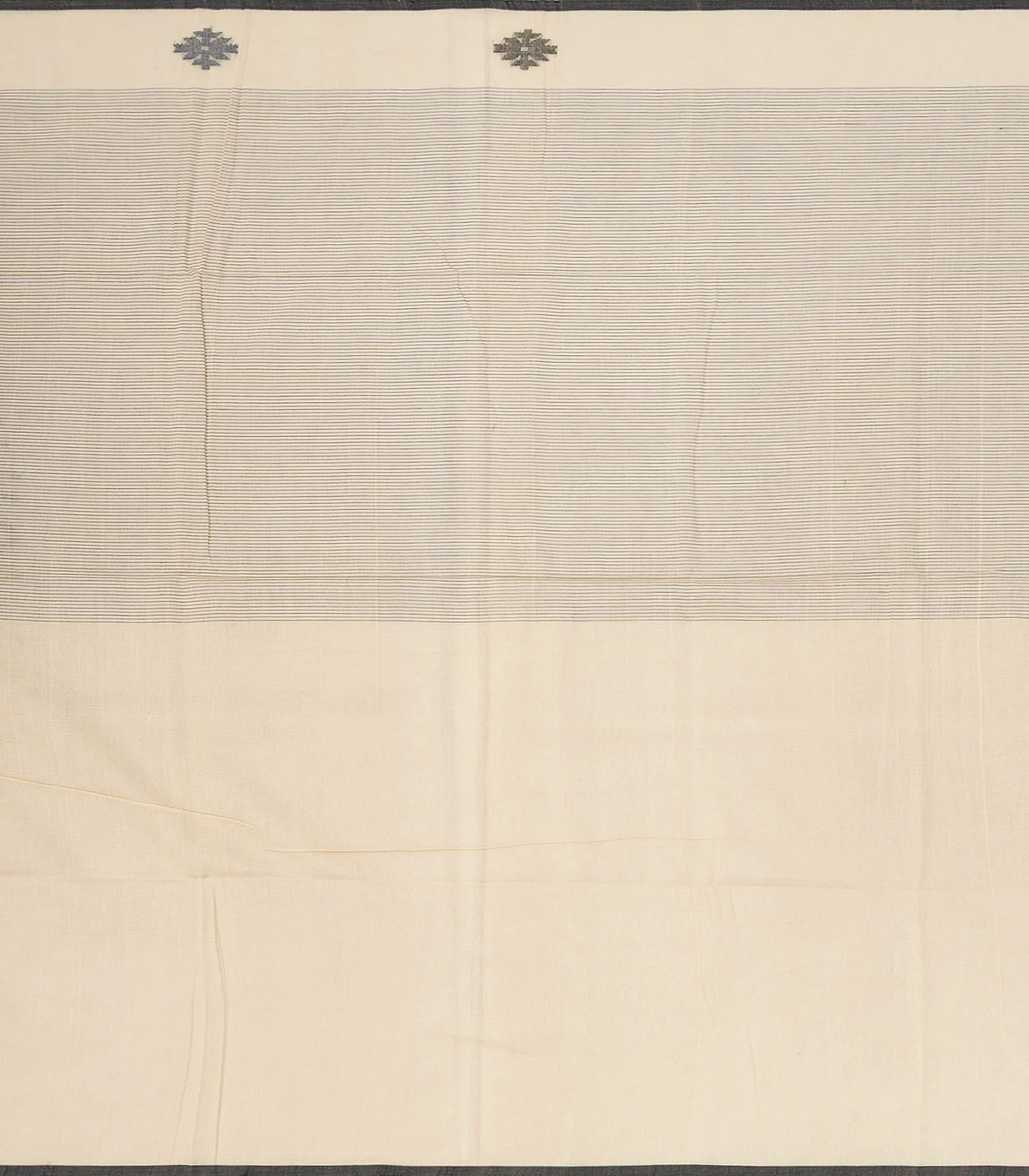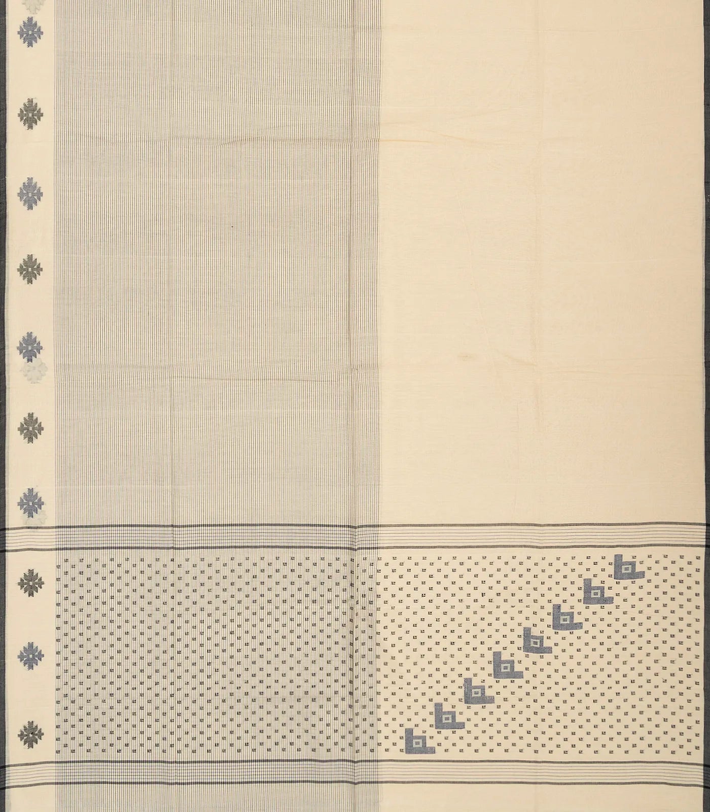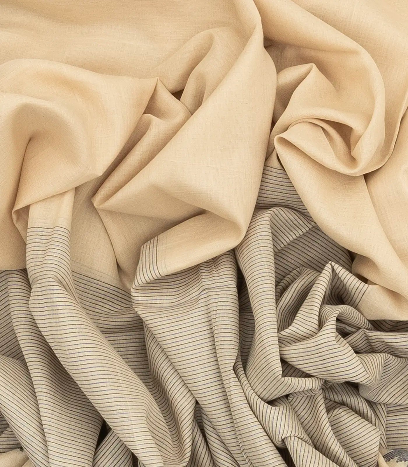 This handwoven bengal cotton saree is filled with half stripes in taupe body along with contrast border and pallu