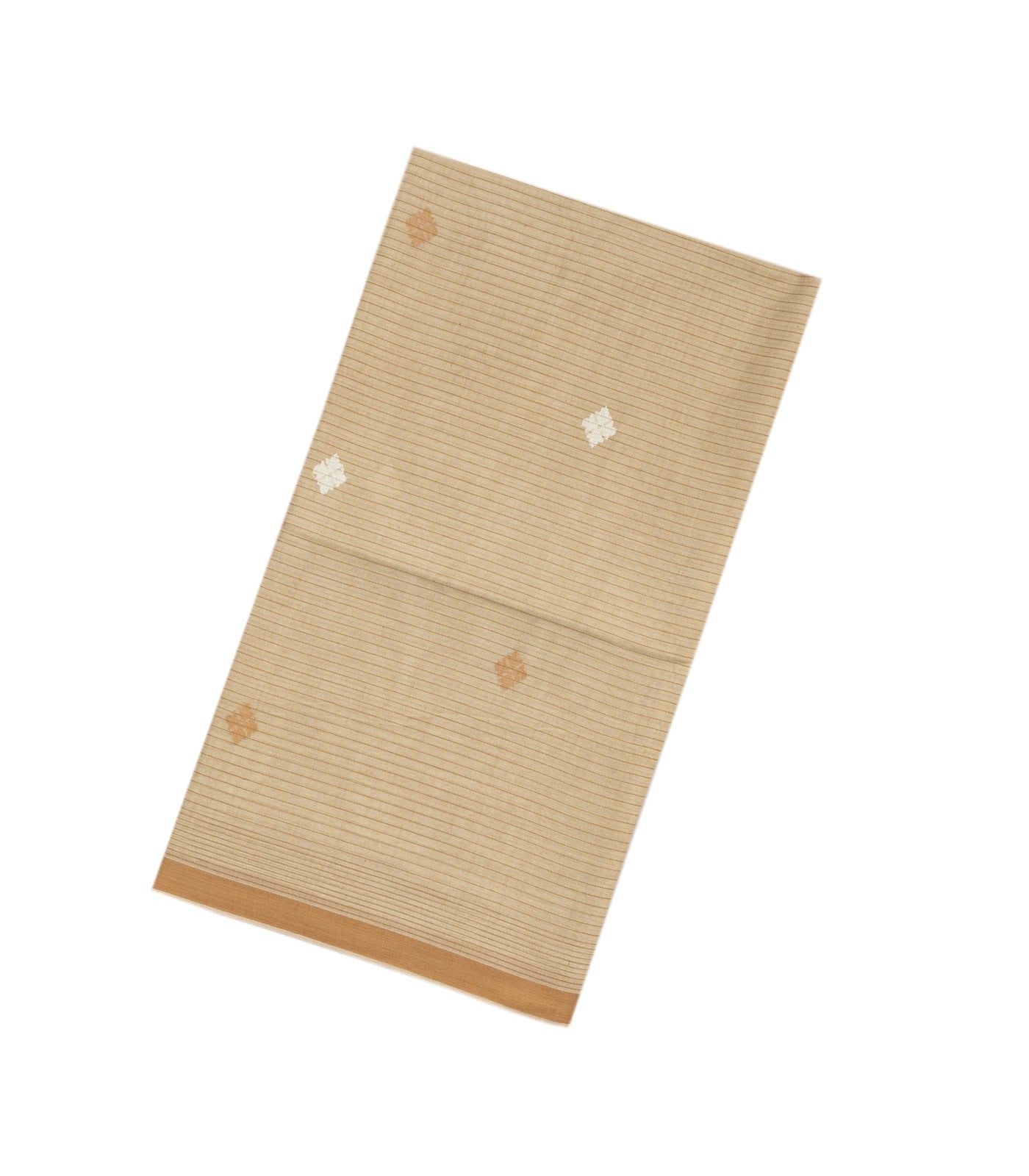This handwoven bengal cotton saree is filled with stripes & buttas in taupe body along with beige border and pallu