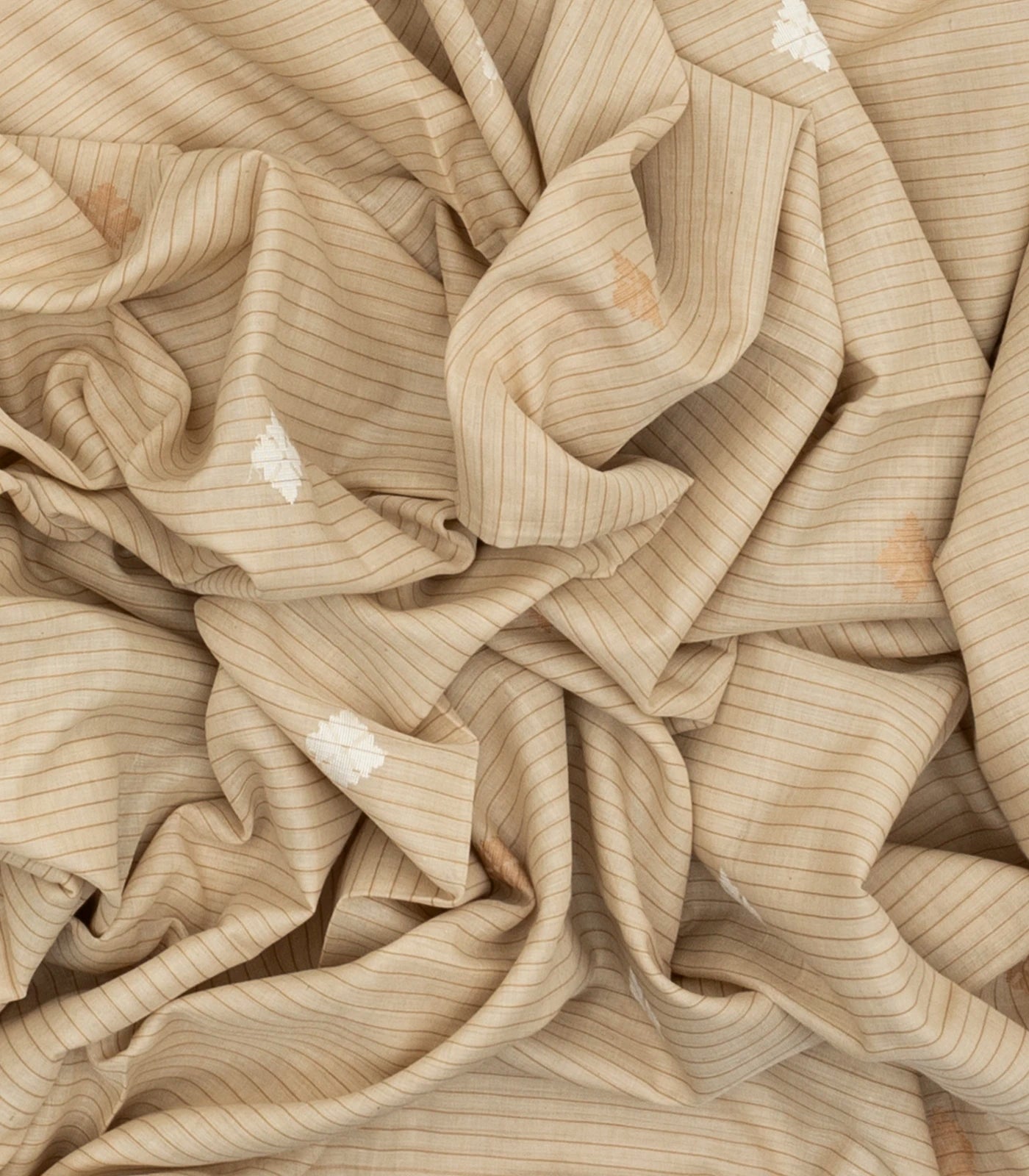 Taupe Handloom Bengal Cotton Saree With Stripes & Buttas