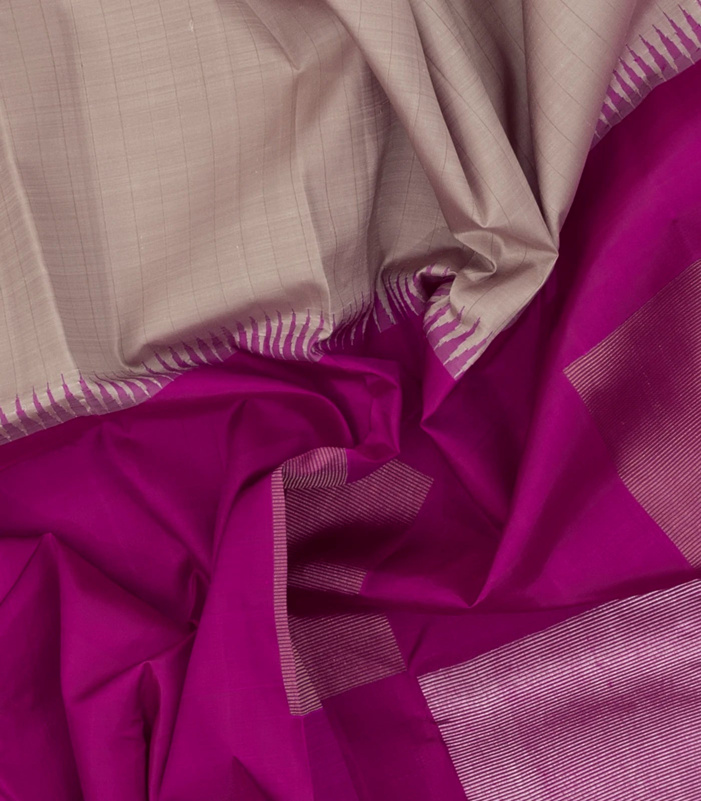 Taupe & Magenta Handloom Half & Half Kanchipuram Silk Saree With Buttas-KA14759