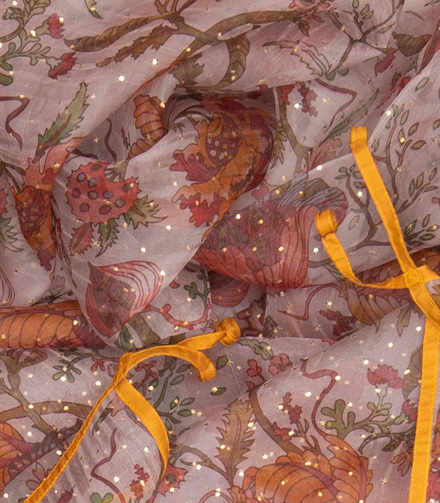 Taupe Printed Organza Silk Saree With Floral Motifs-Taupe