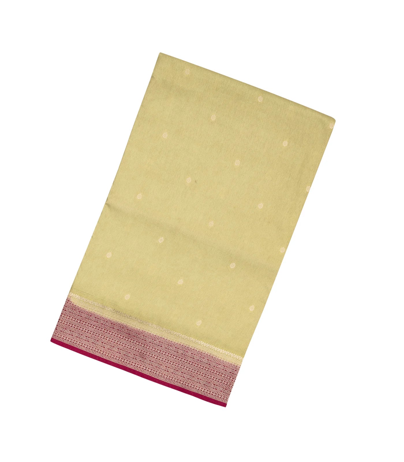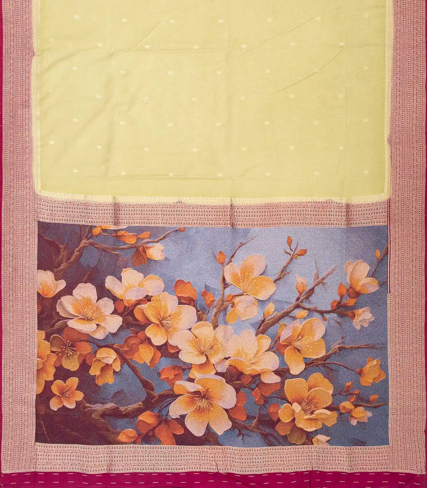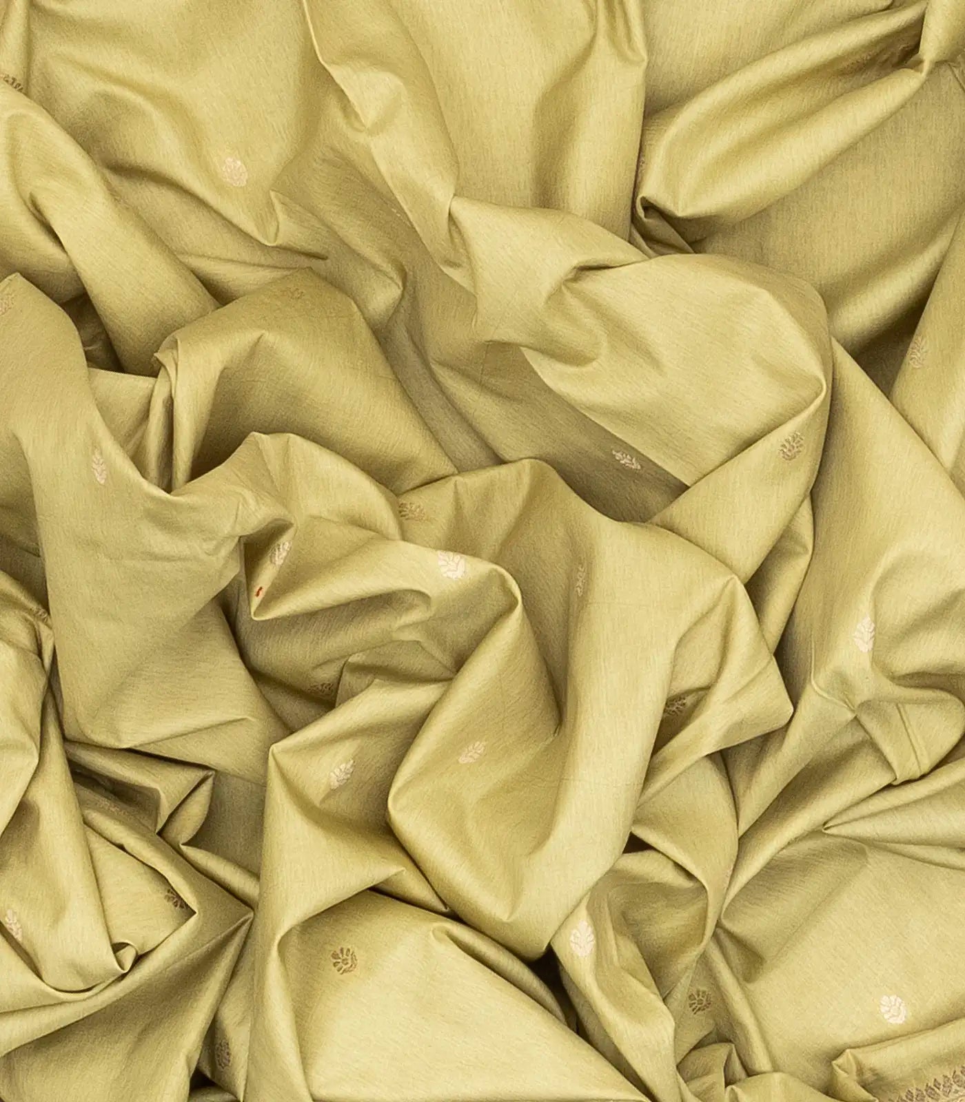 This woven blended soft silk saree is filled with floral buttas in taupe body along with border and digital weaving floral motifs in pallu