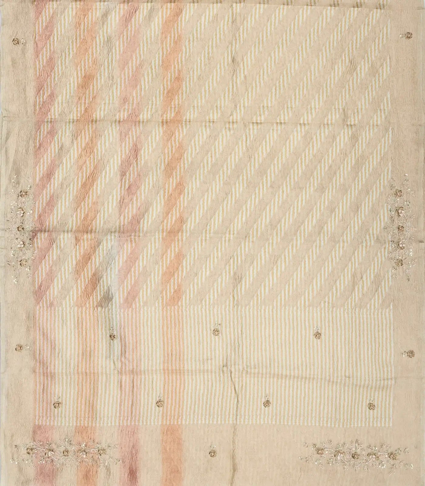 This woven blended tissue saree is filled with embroidered floral motifs in taupe body along with border and pallu