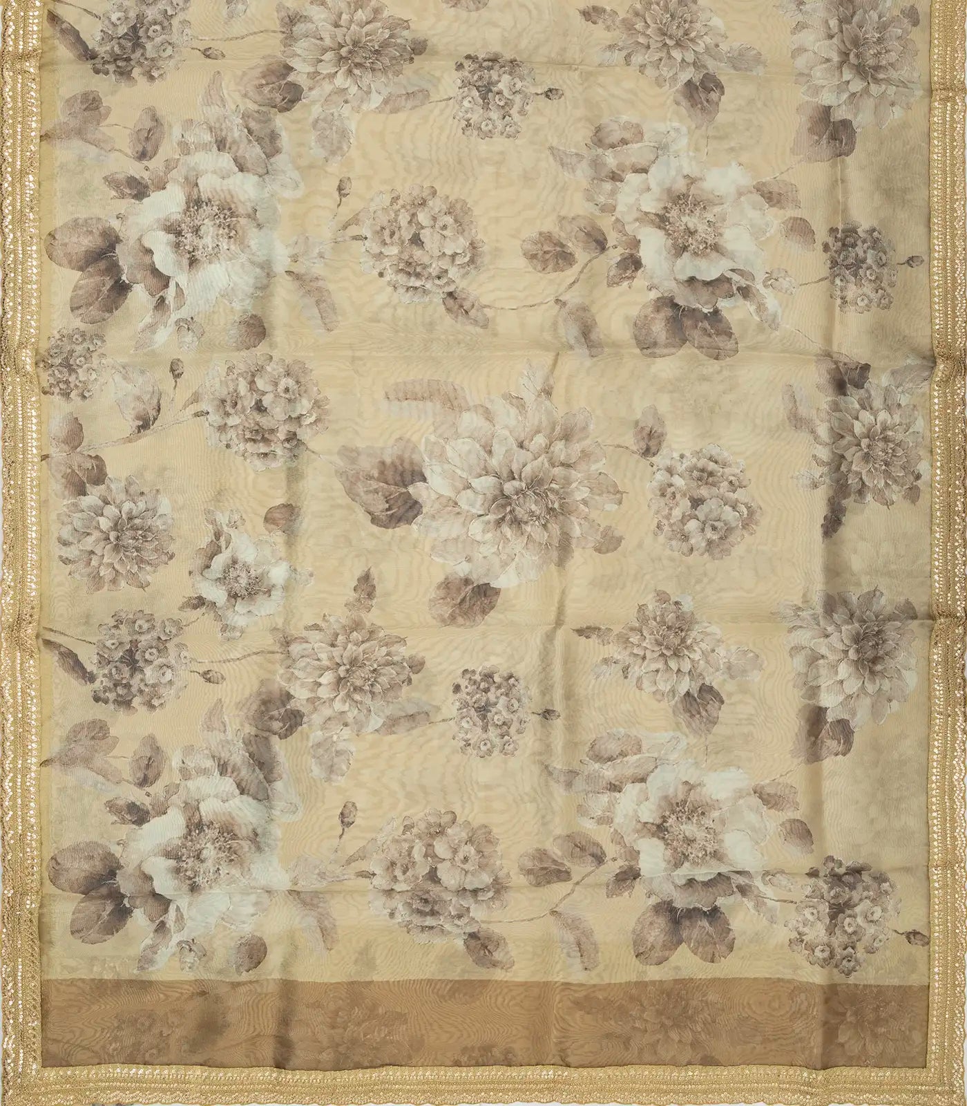 Taupe Woven Organza Saree With Embroidered & Printed Floral Motifs