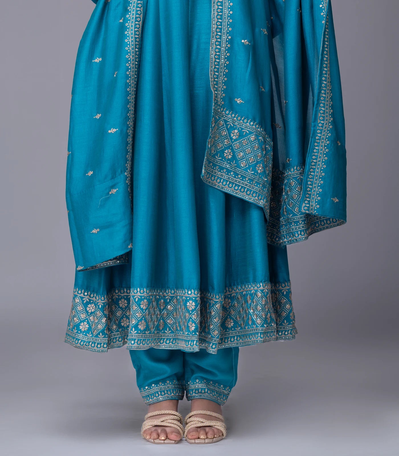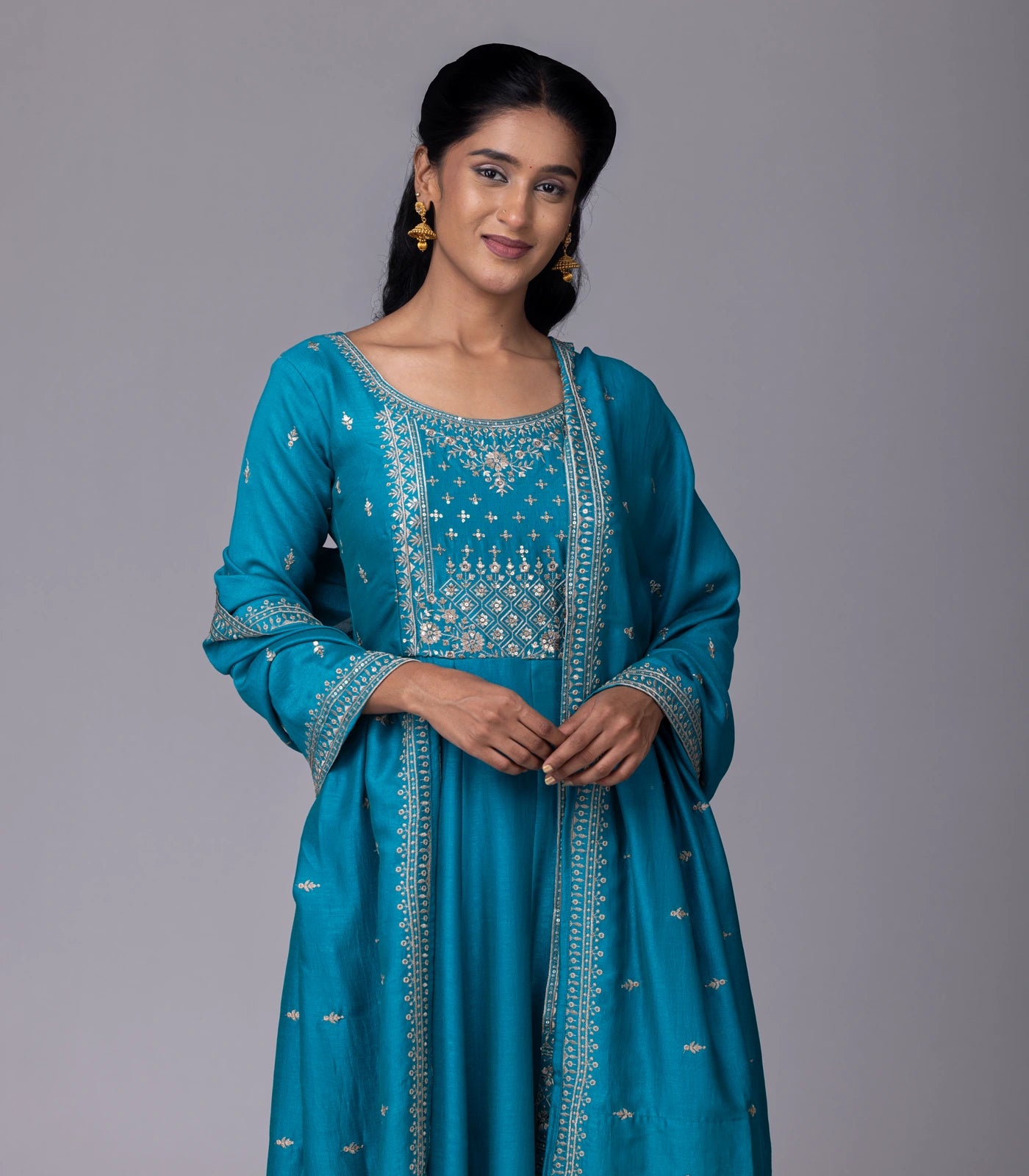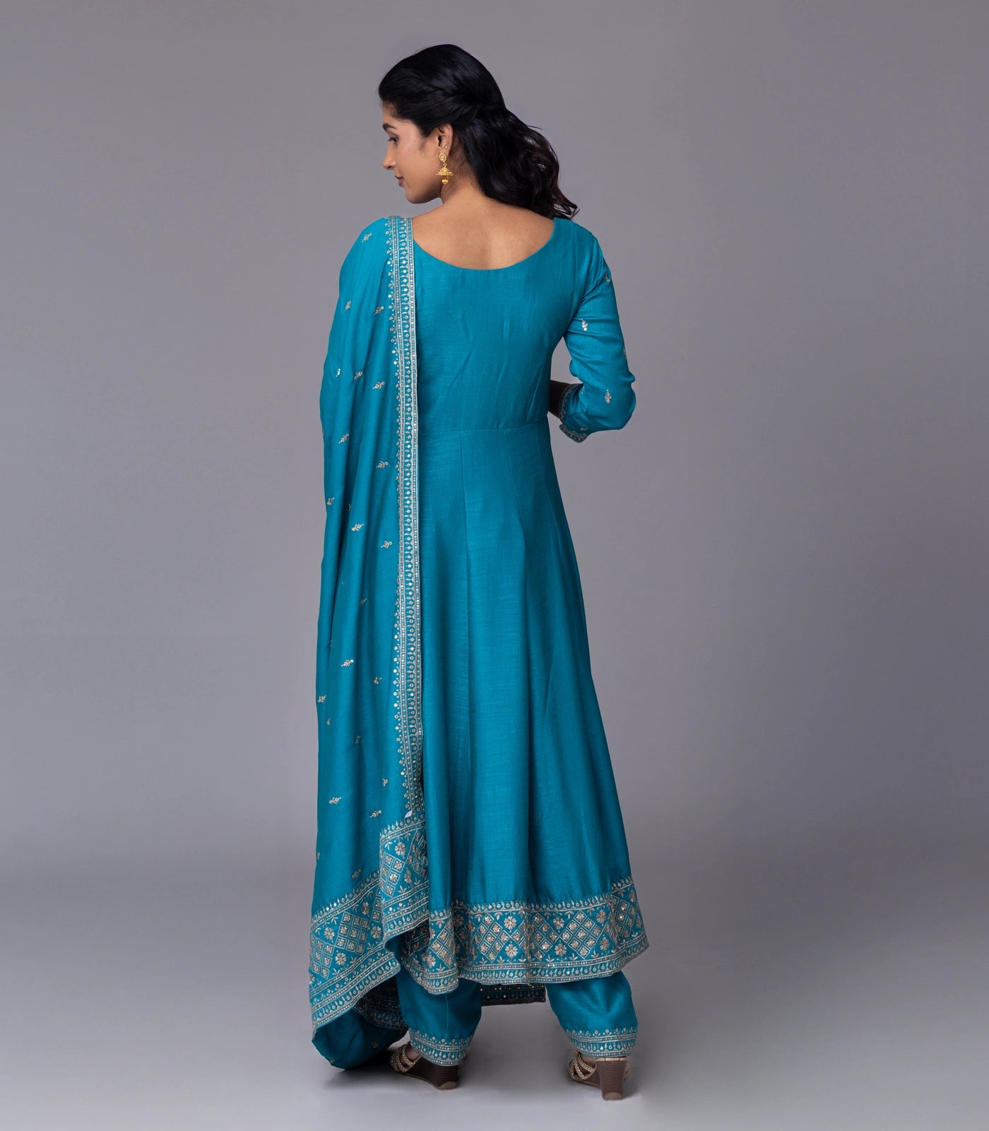 Teal Blue Embroidered Festive Anarkali Set-RC5593