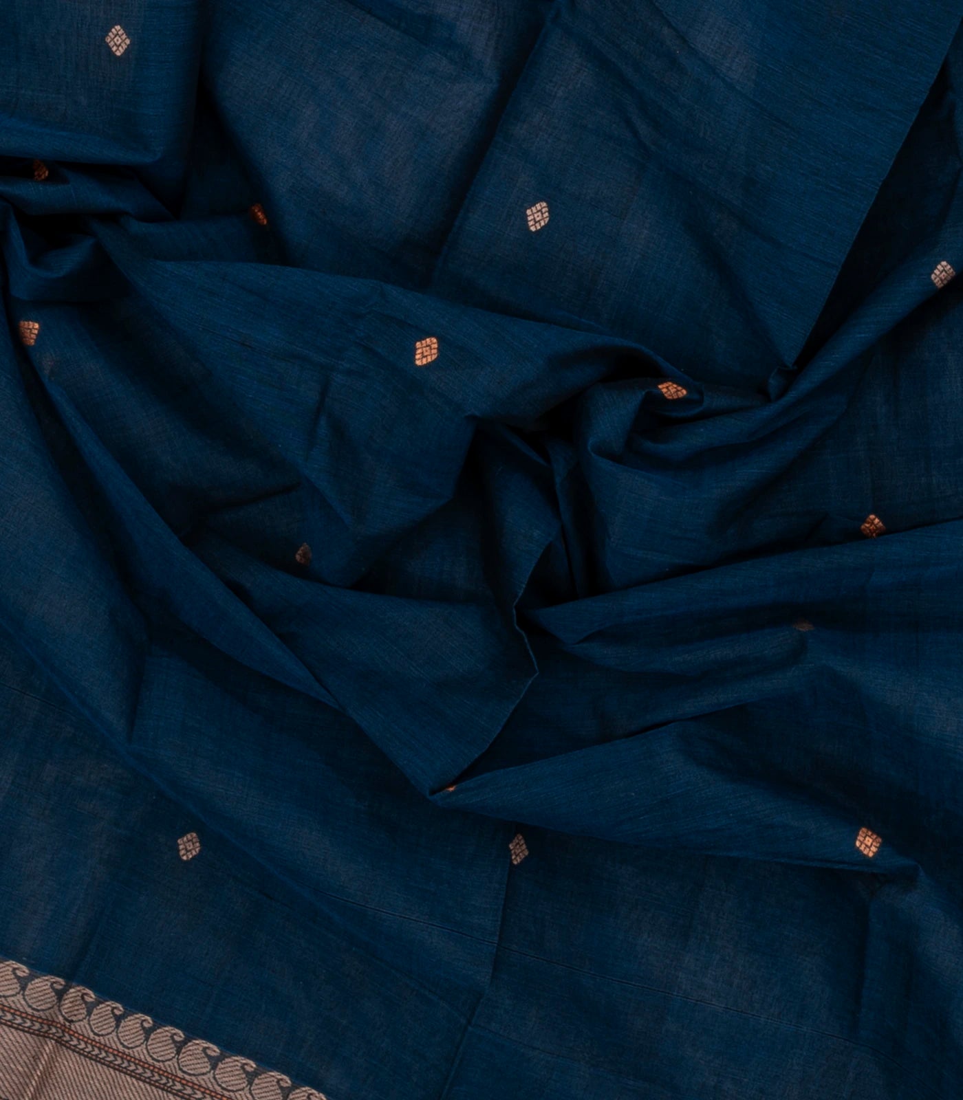 This handwoven kanchi cotton saree is filled with diamond buttas in teal body along with border and pallu