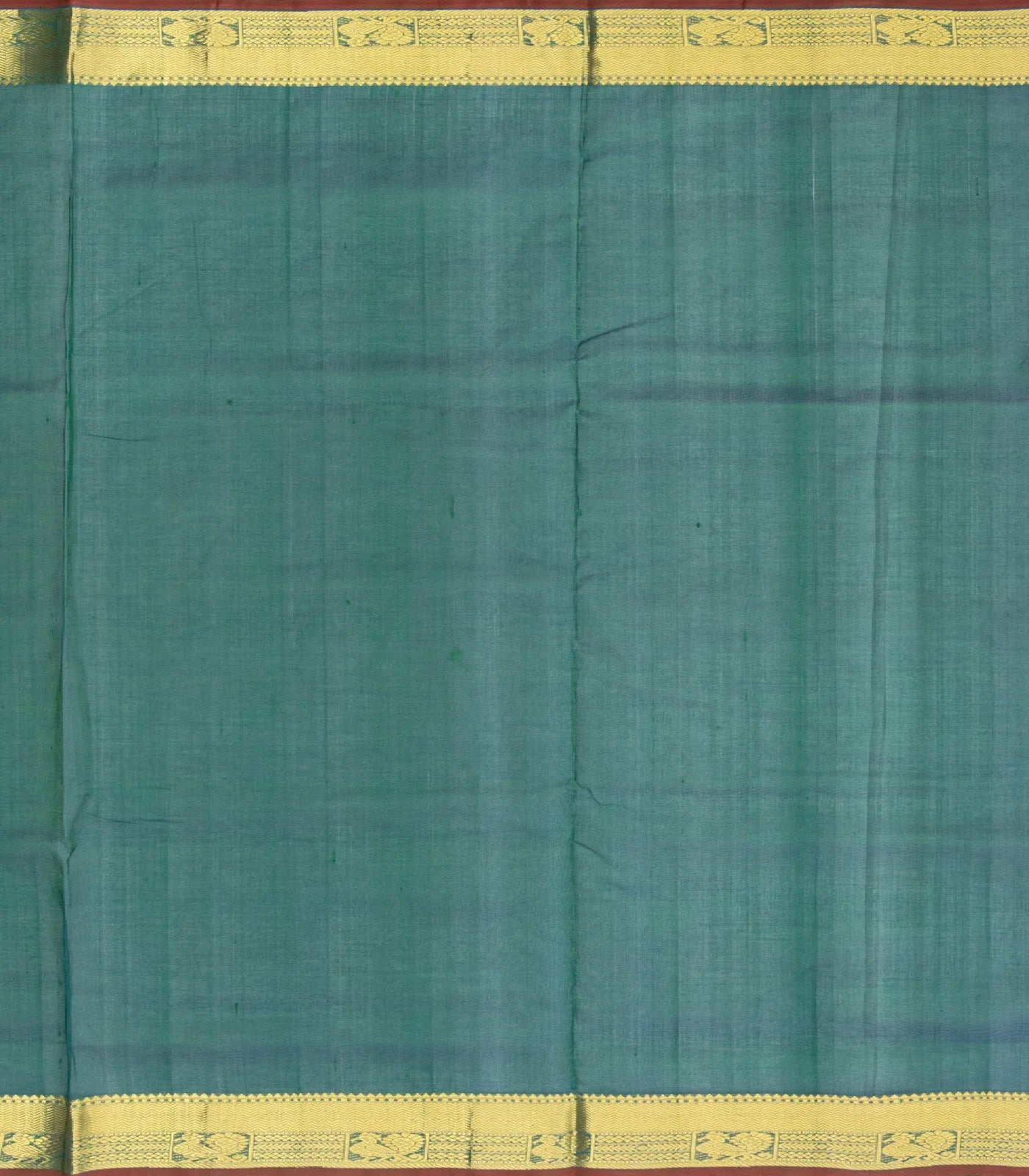 This handwoven silk cotton saree is filled with plain teal body along with zari border and pallu