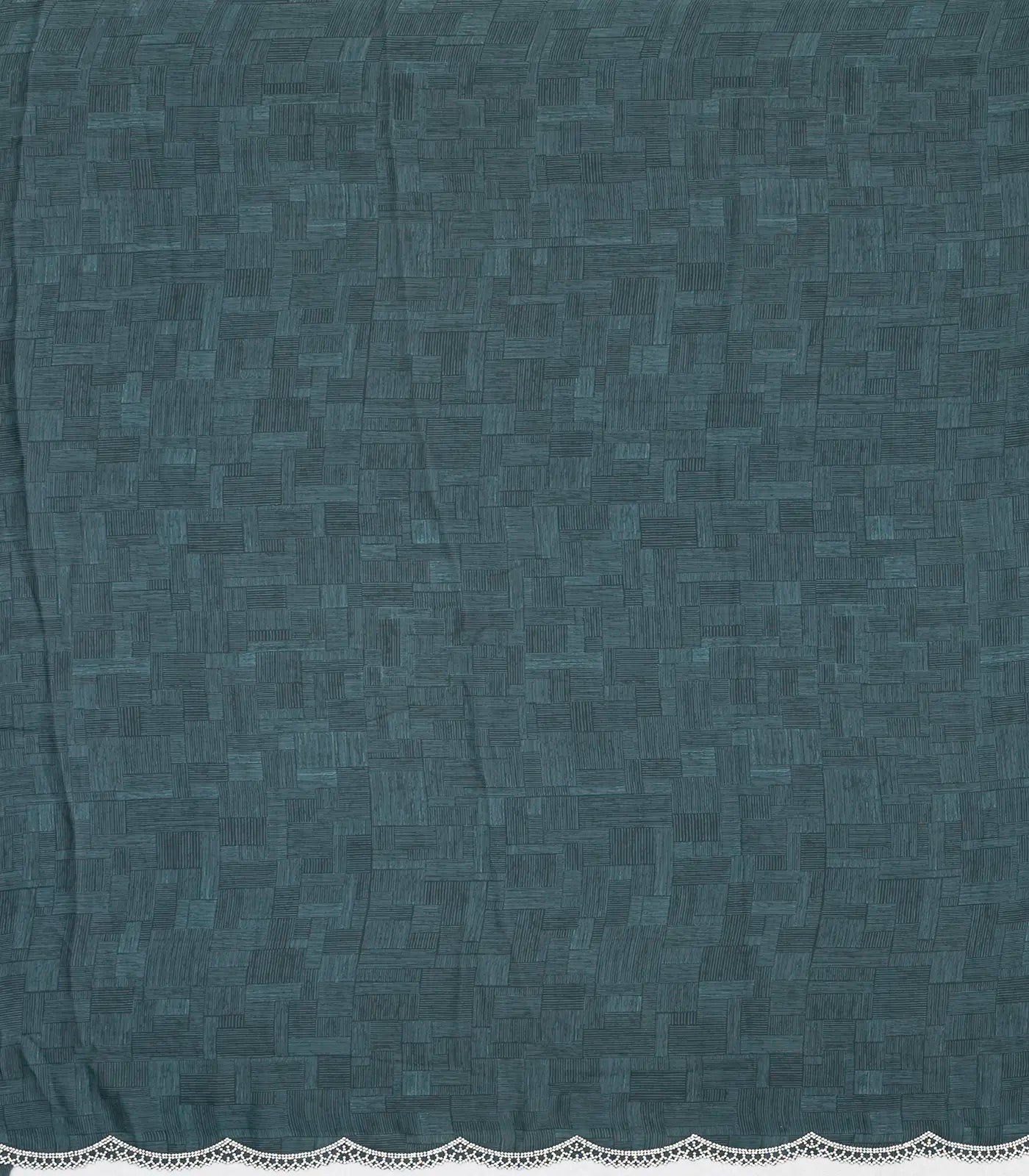 Teal Woven Blended Chiffon Saree With Printed Floral Motifs & Embroidered Selvage-EN1922