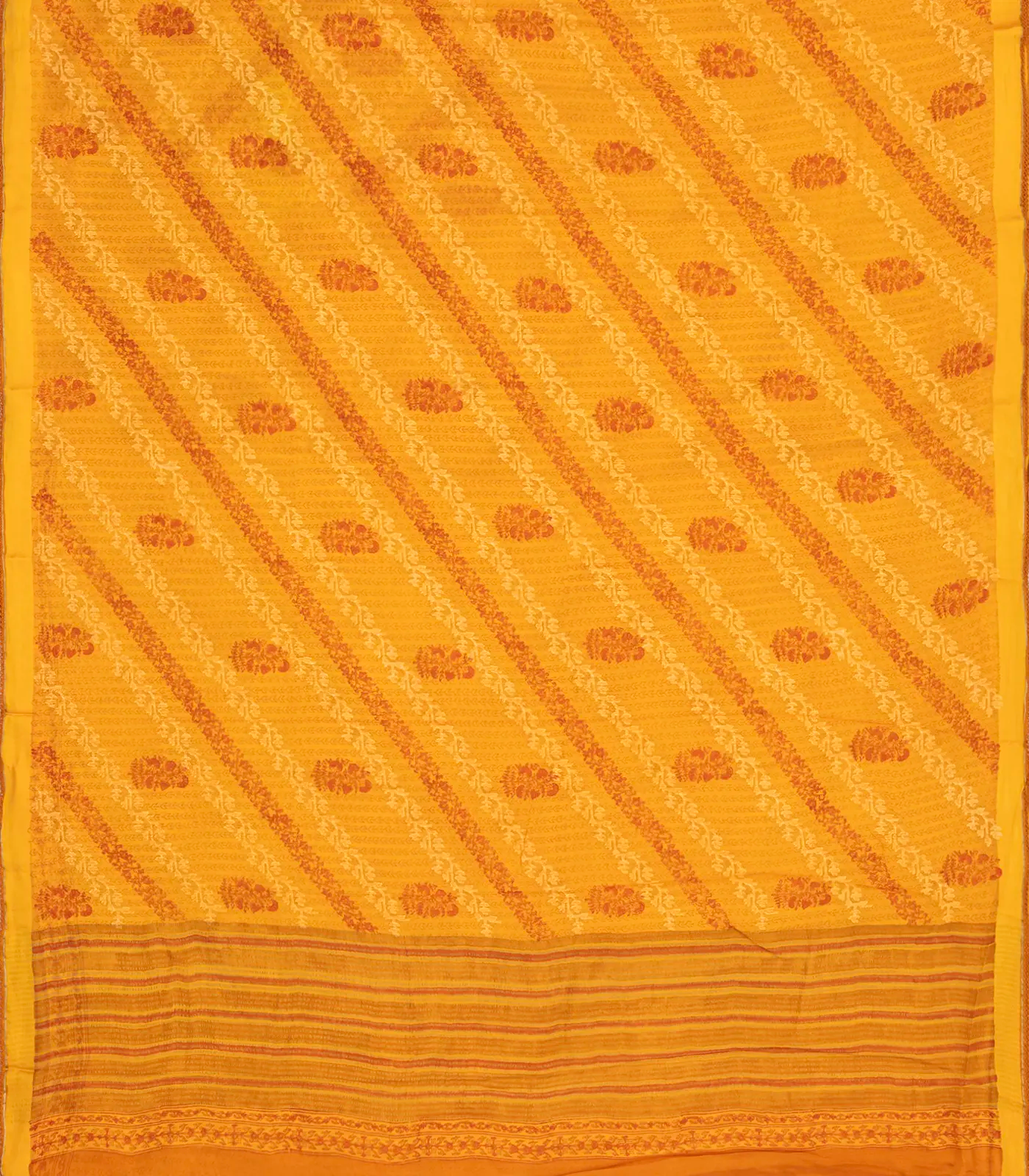 Turmeric Yellow Woven Pure Silk Saree With Printed Floral Motifs-PS0674
