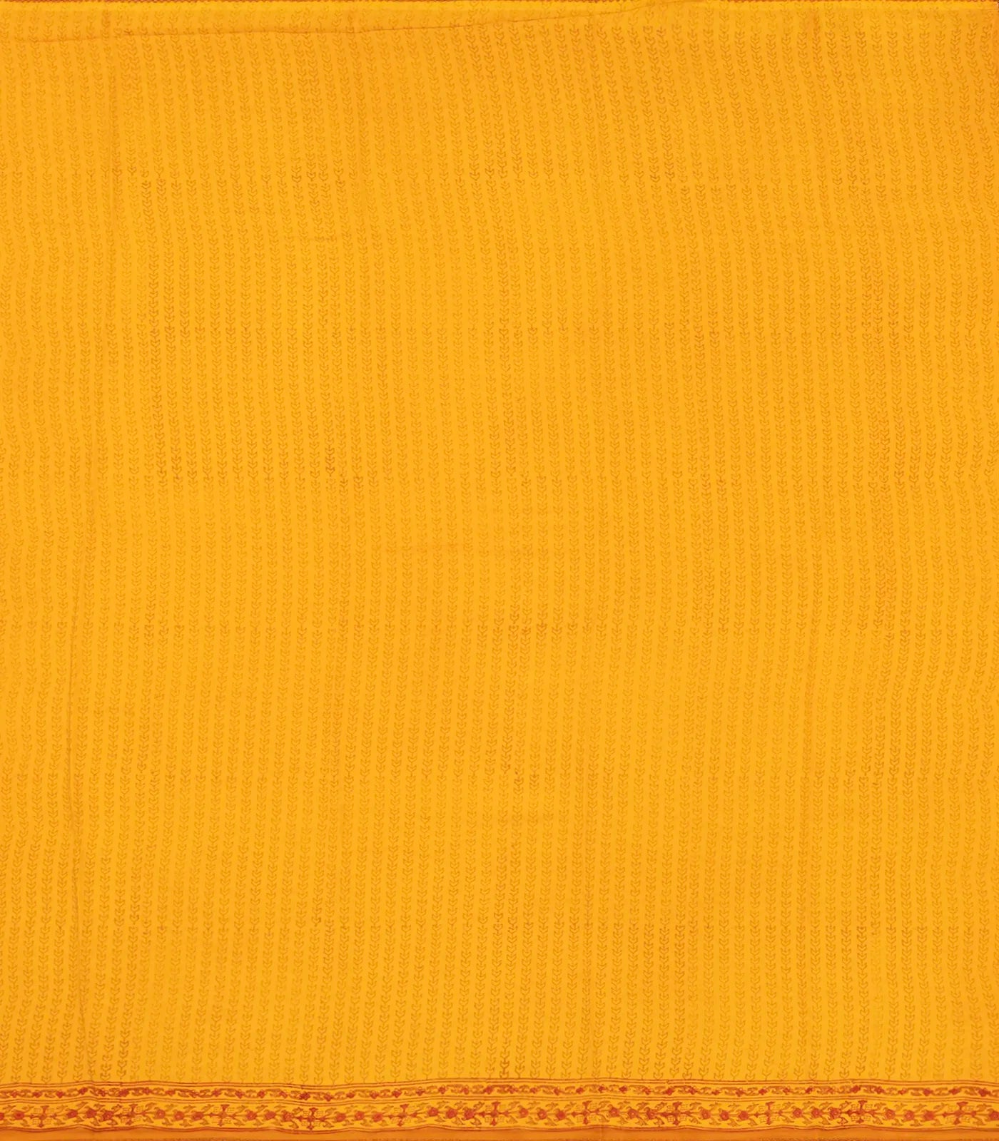 This woven pure silk saree is filled with printed floral motifs in turmeric yellow body along with border and pallu