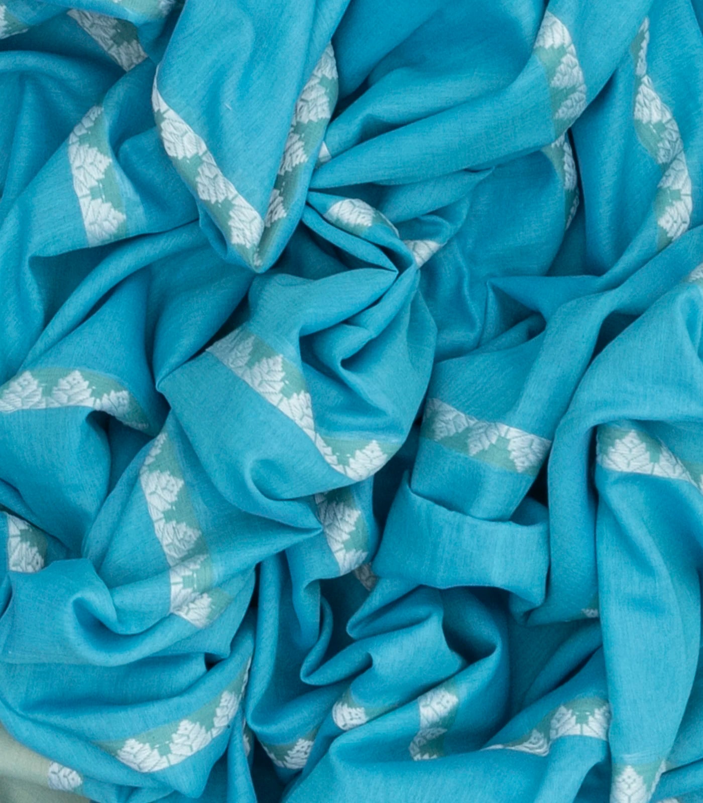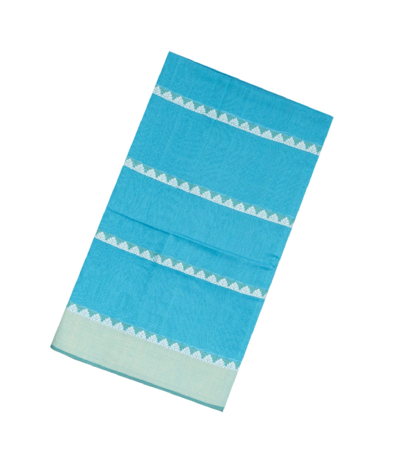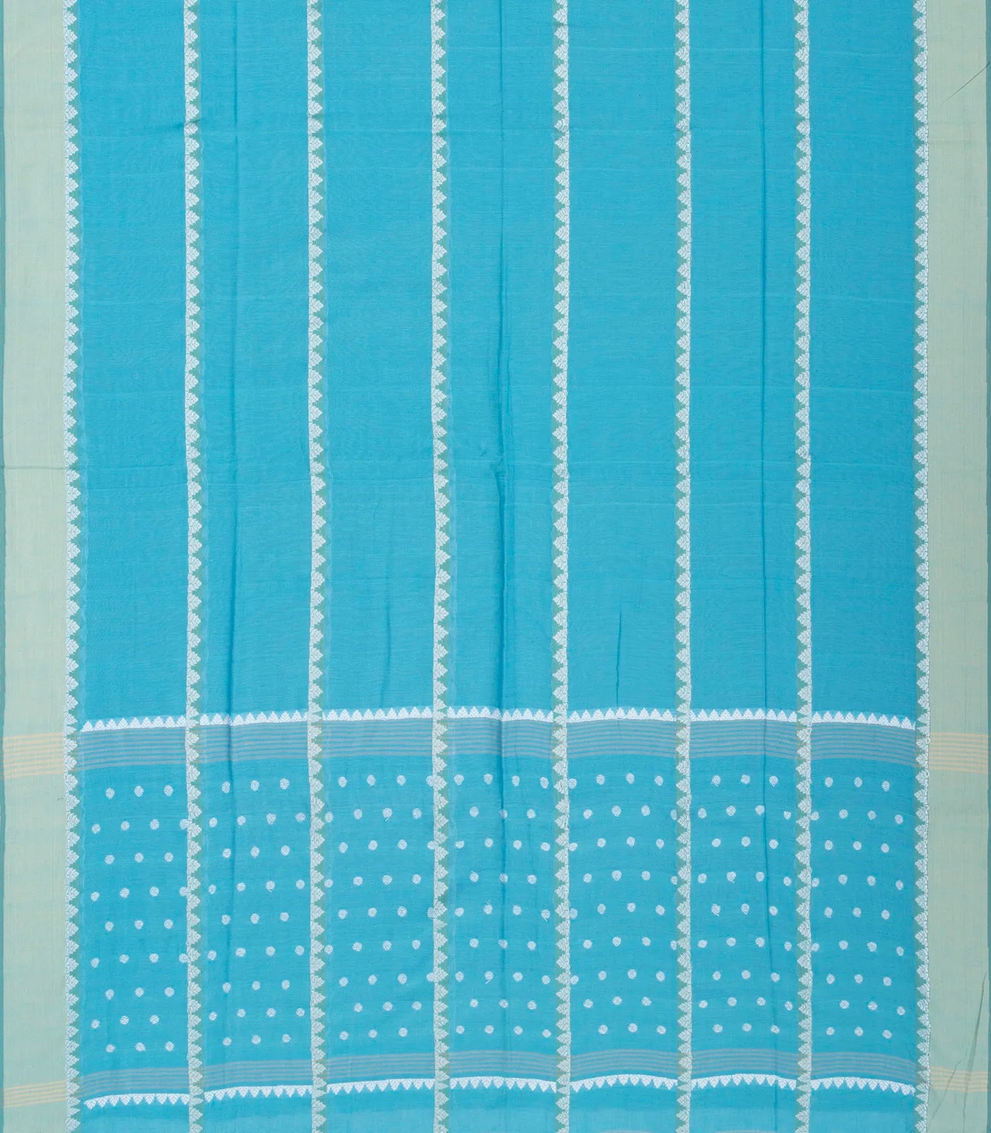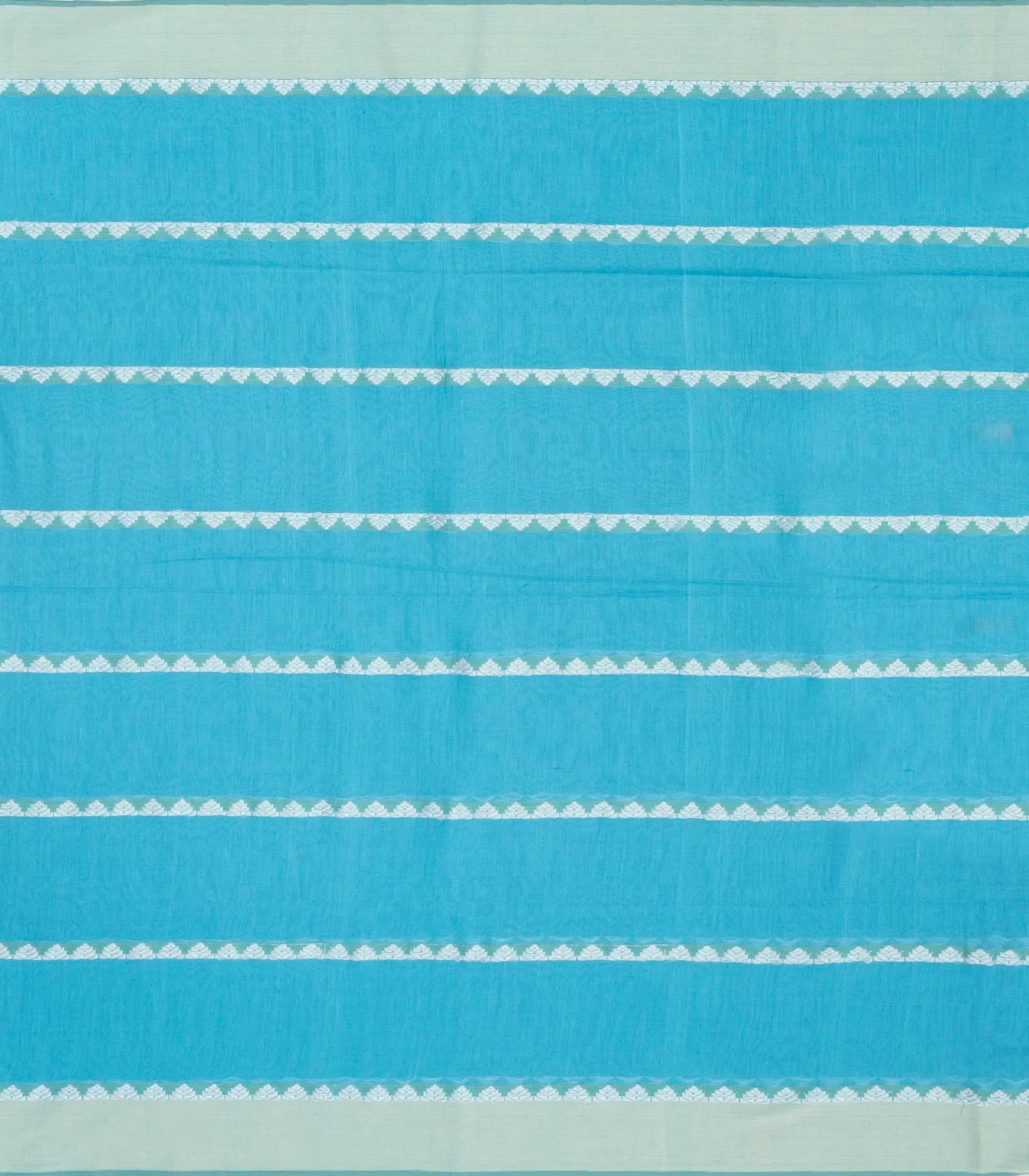 Turquoise Handloom Bengal Cotton Saree With Temple Stripes-BG1099