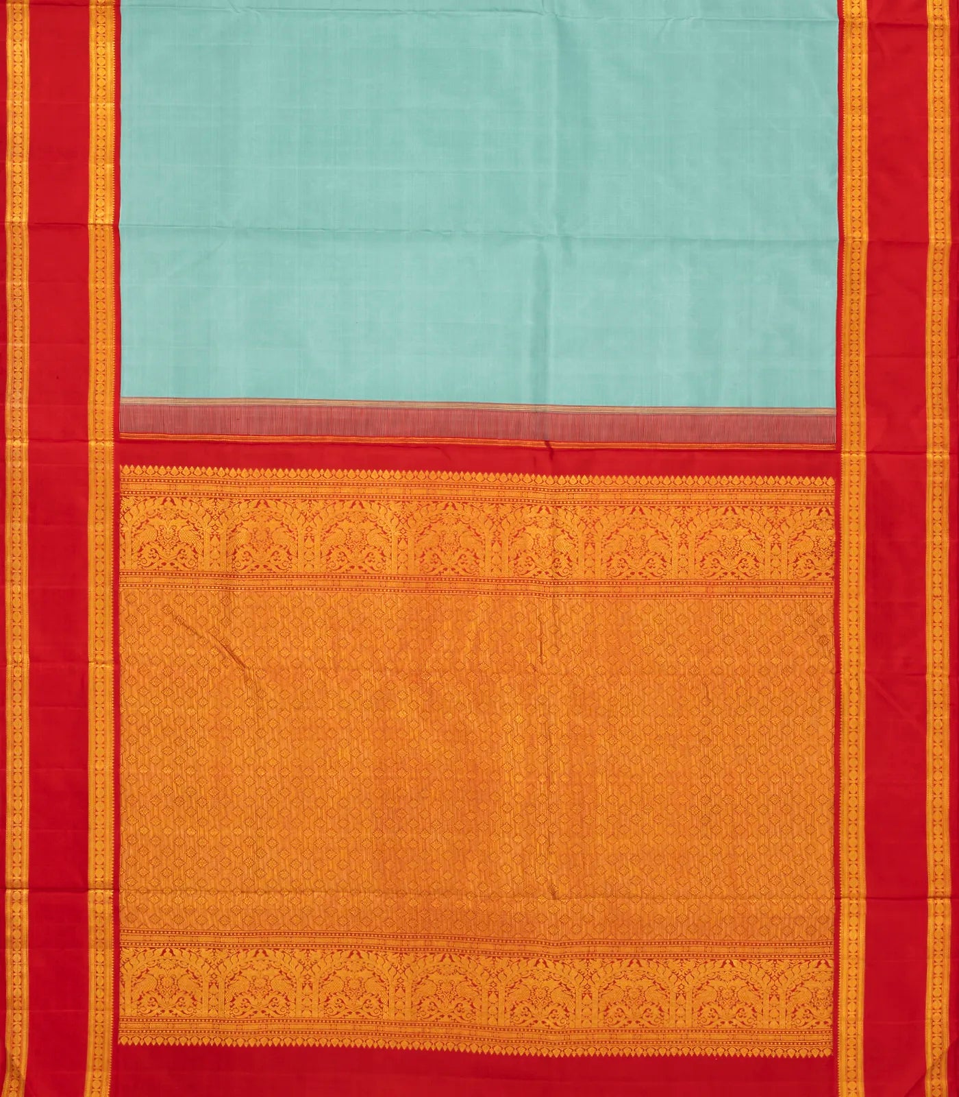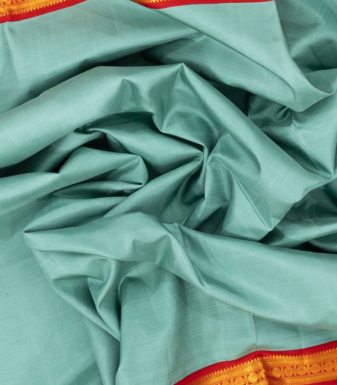 Turquoise Handloom Korvai Kanchipuram 9 Yards Silk Saree With Contrast Border-KA13391