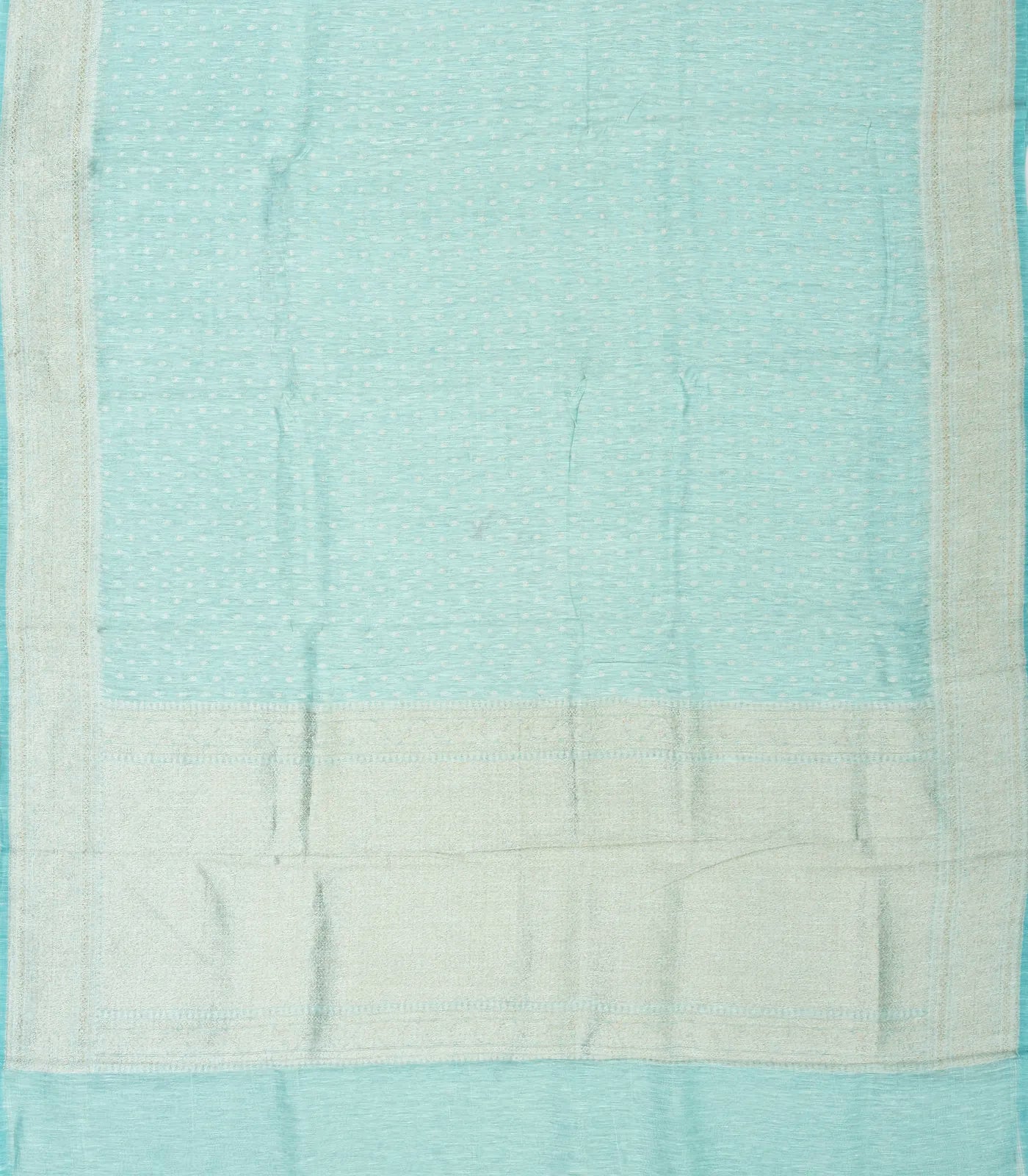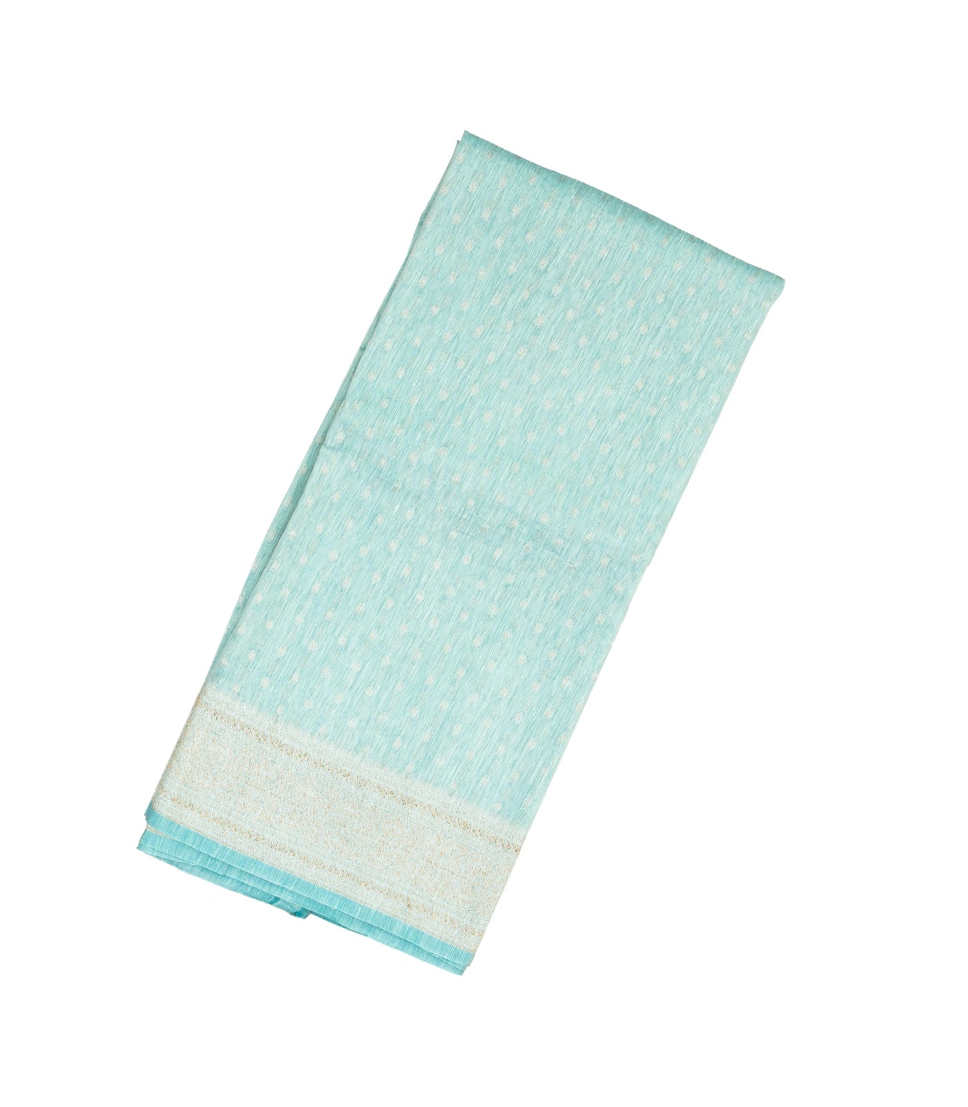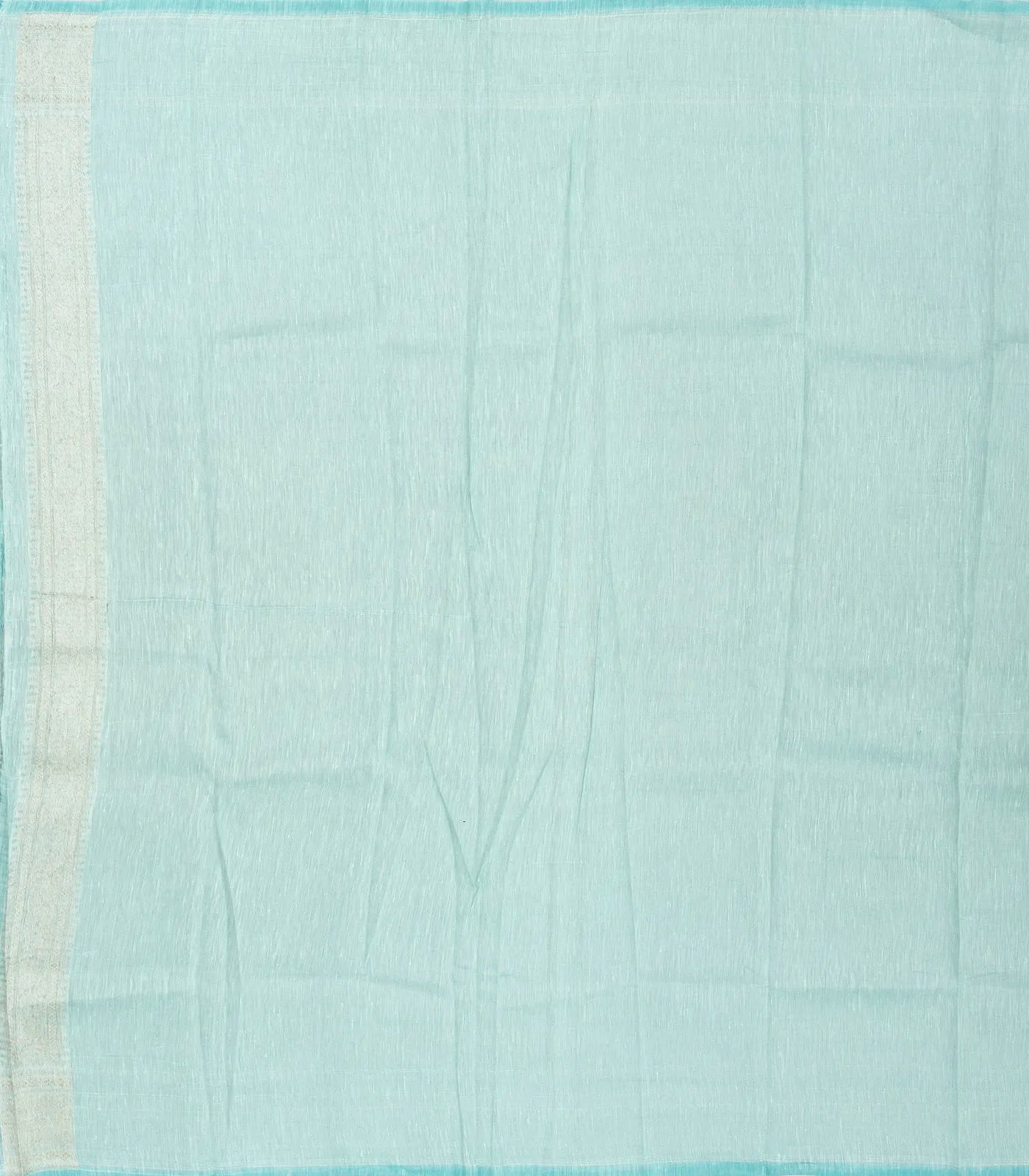 Turquoise Handloom Linen Saree With Floral Zari Motifs-LI0607