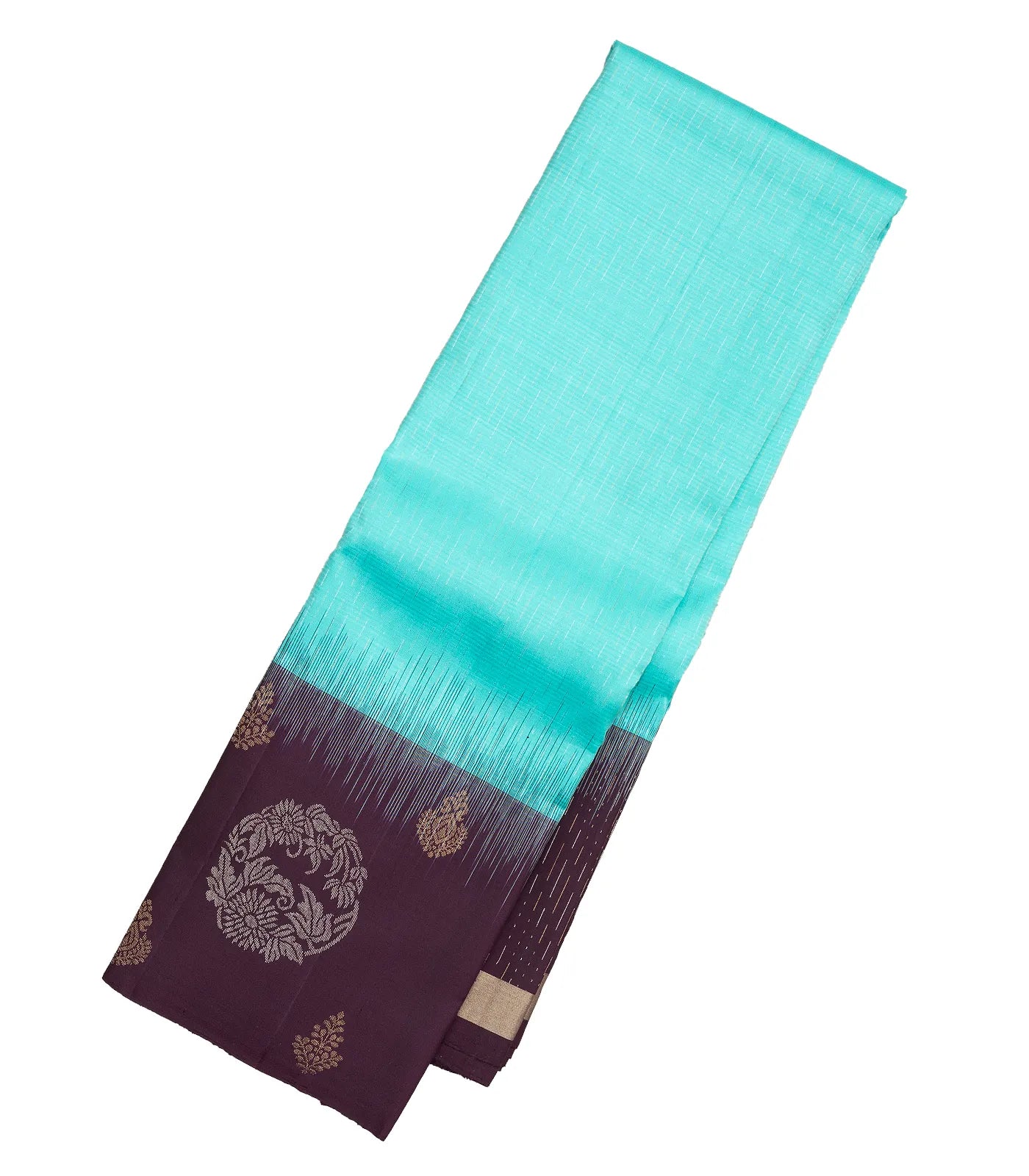 Turquoise Handloom Soft Silk Saree With Checks & Contrast Border-SO4032