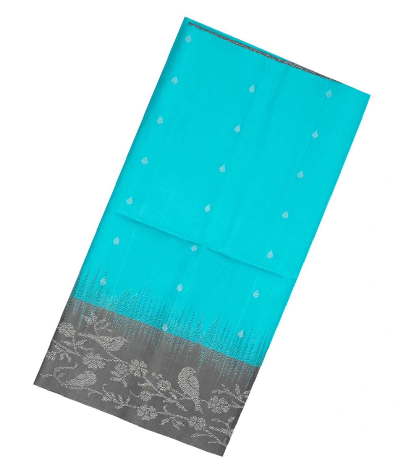 Turquoise Handloom Soft Silk Saree With Floral Motifs-SO4000