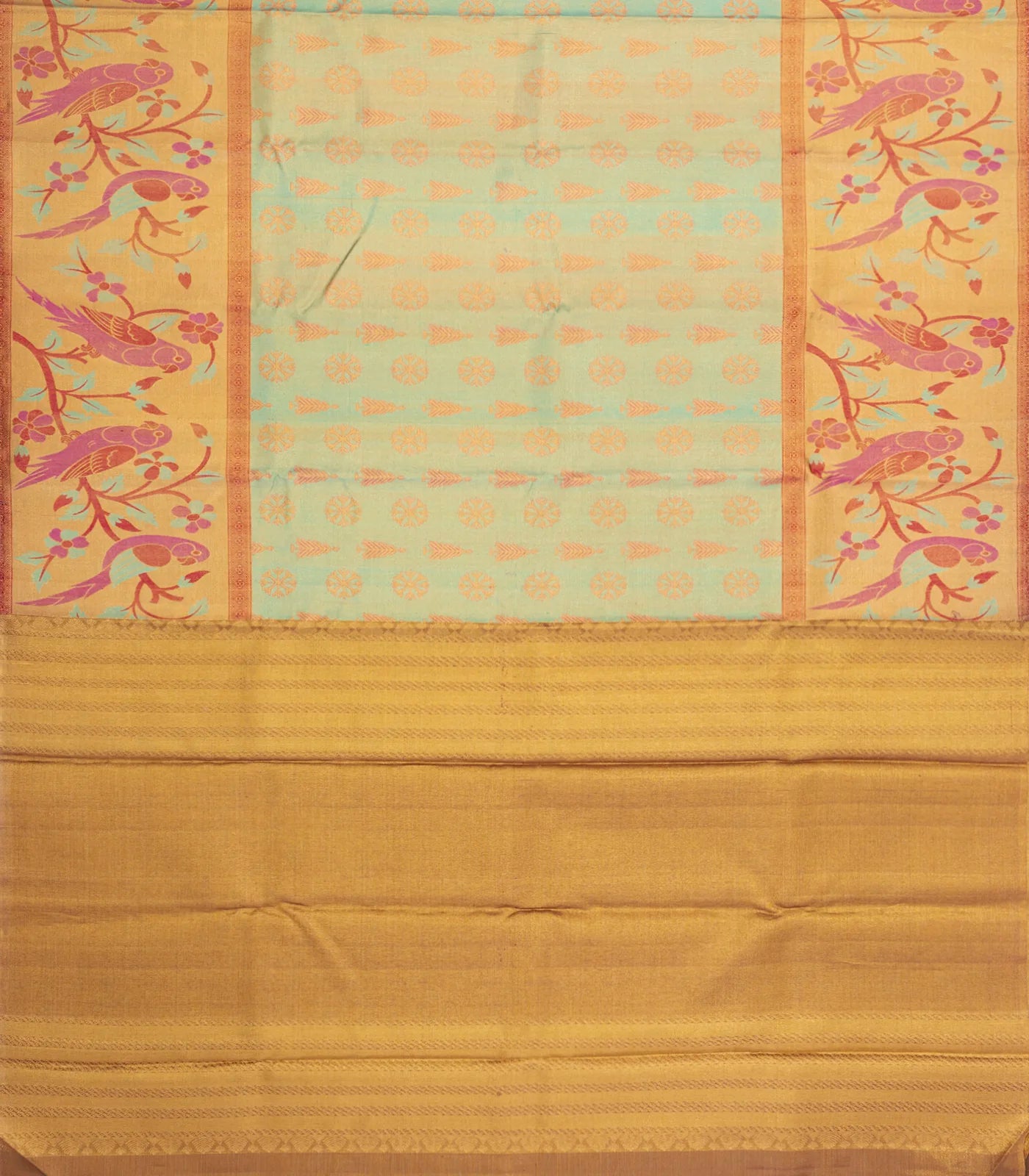 Turquoise Handloom Tissue Kanchipuram Silk Saree With Meena Floral Motifs-KA14553