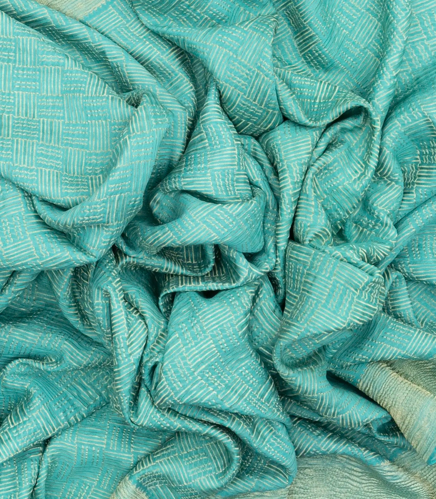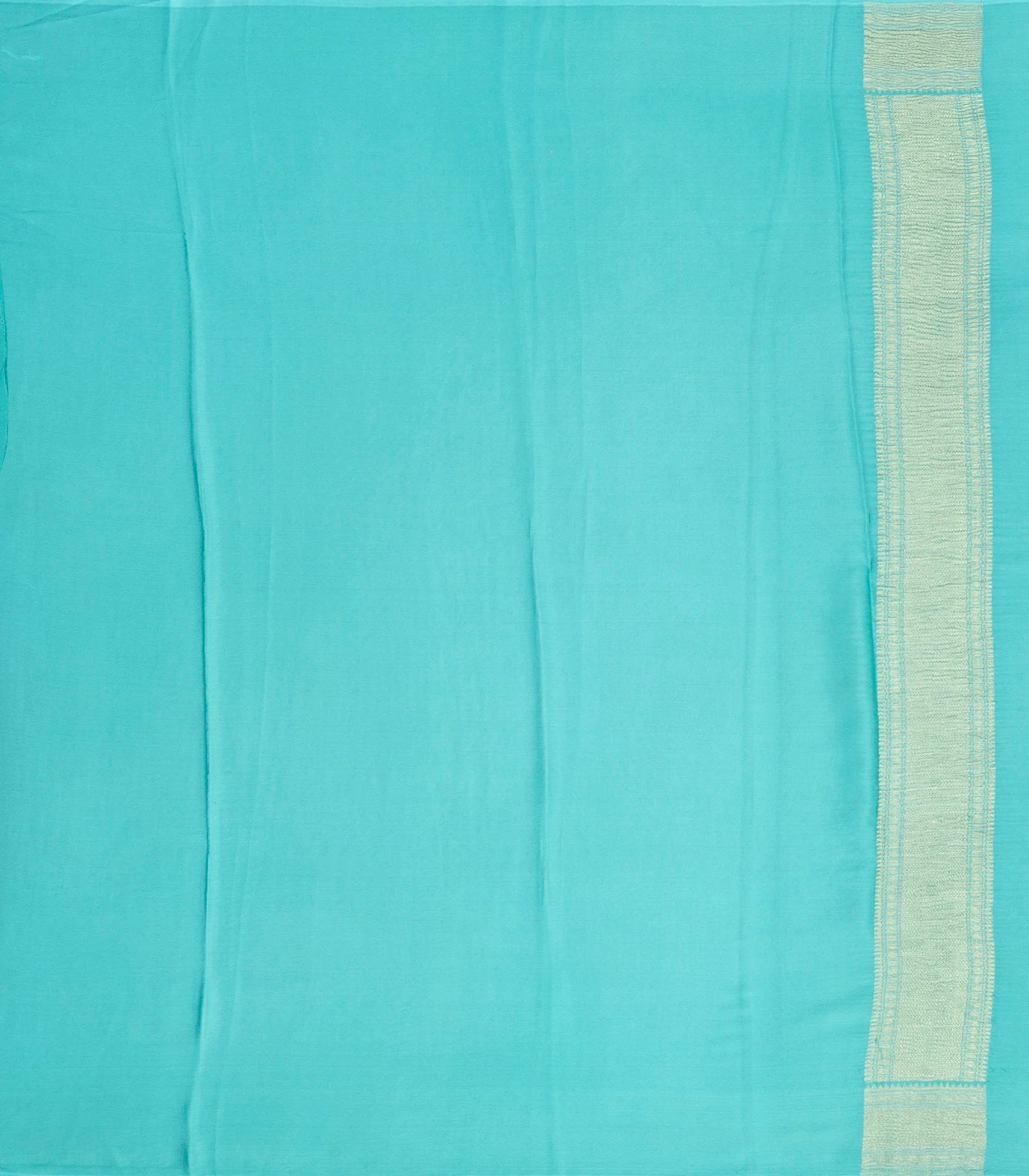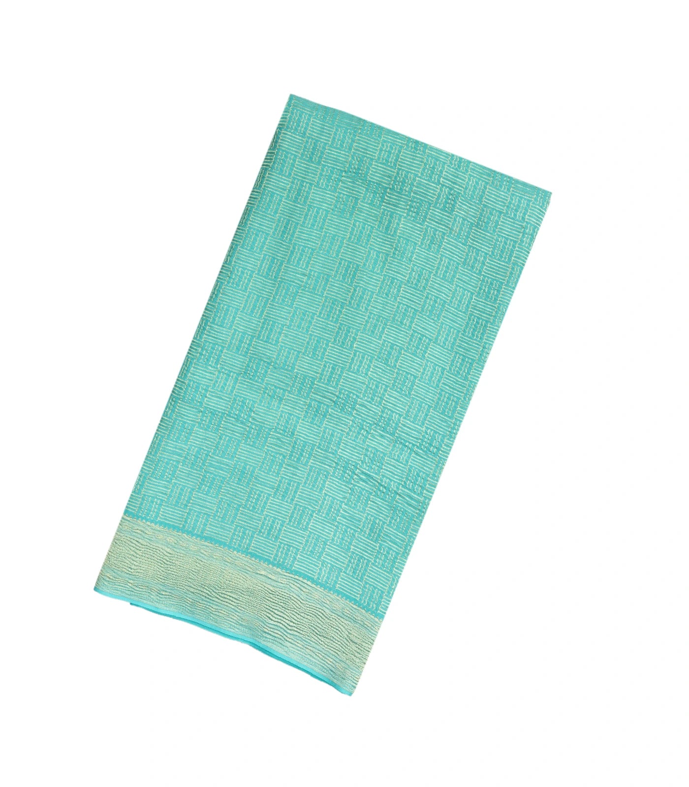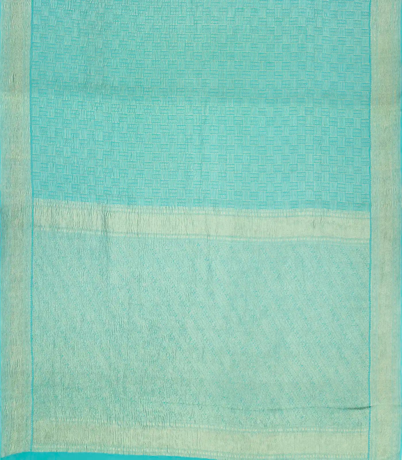 This woven mysore silk saree is filled with checks in turquoise body along with zari border and pallu