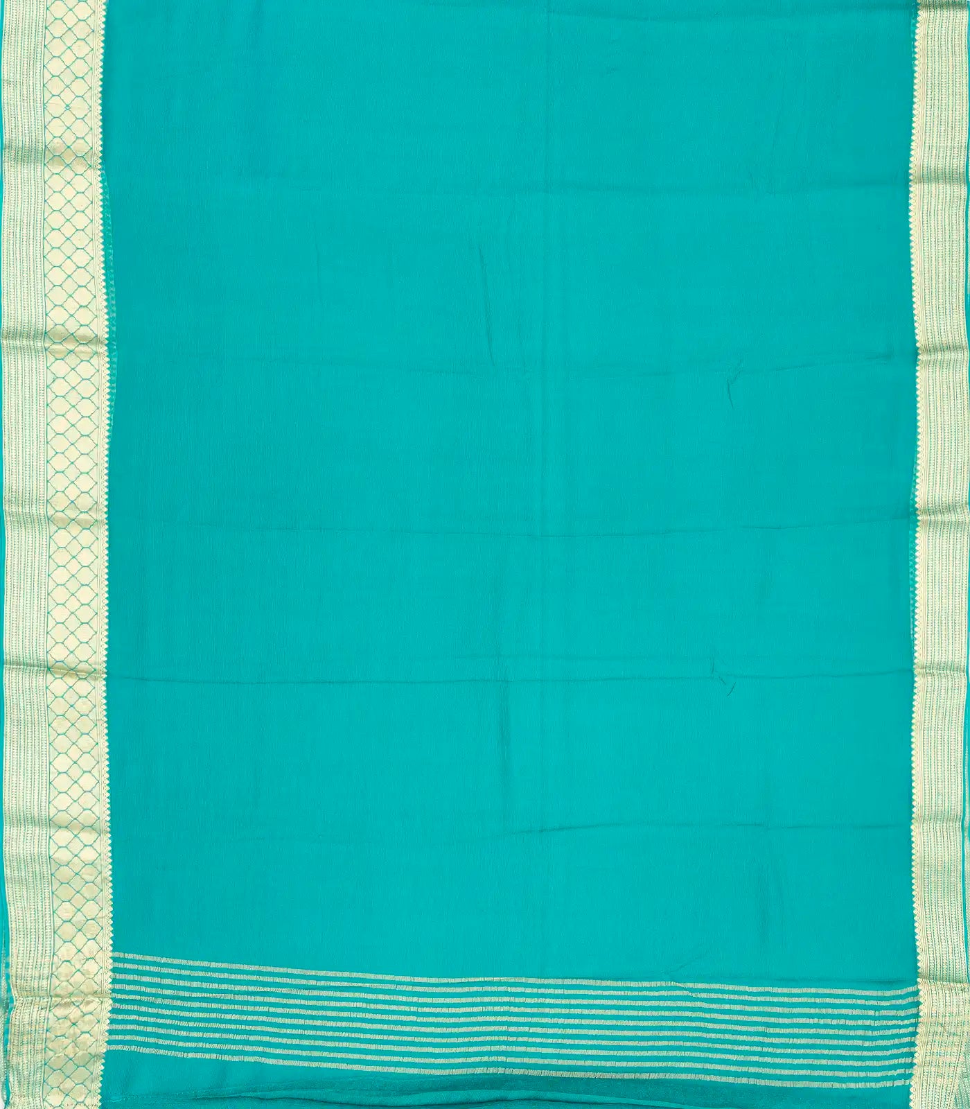 Turquoise Woven Mysore Silk Saree With Floral Zari Border-MS3071