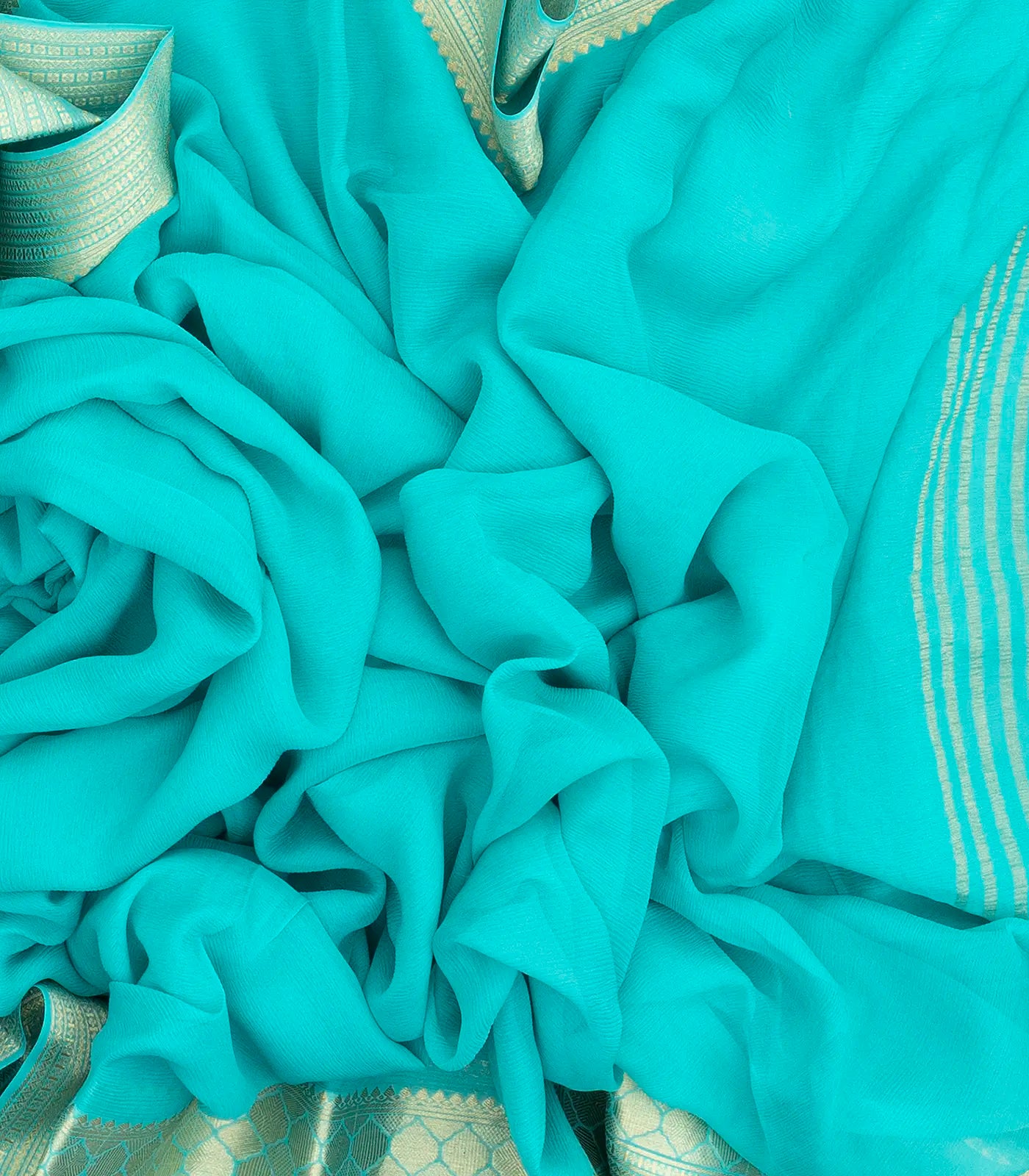 This woven mysore silk saree is filled with plain turquoise body along with zari border and pallu