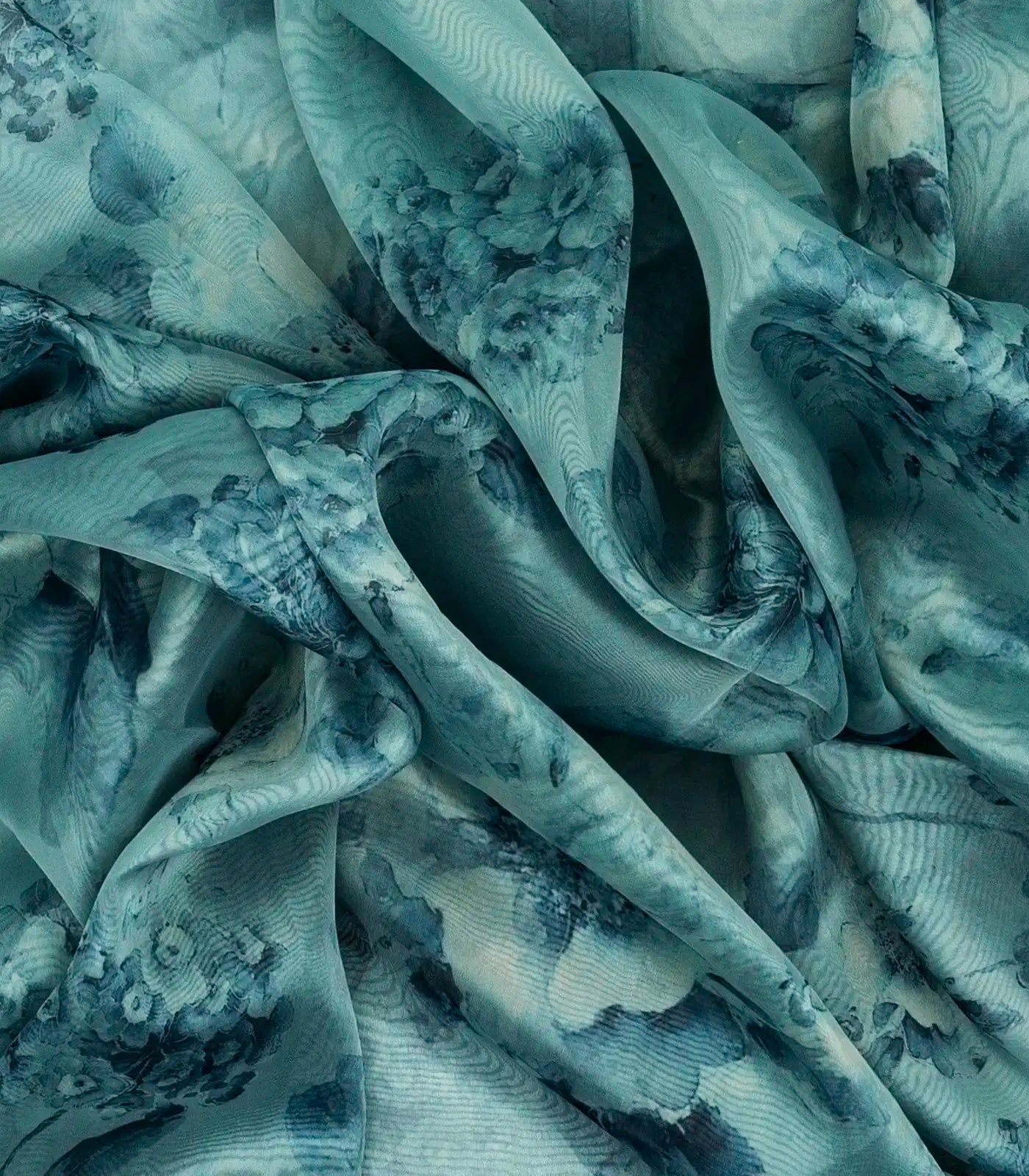 Turquoise Woven Organza Printed Saree With Embroidered Border