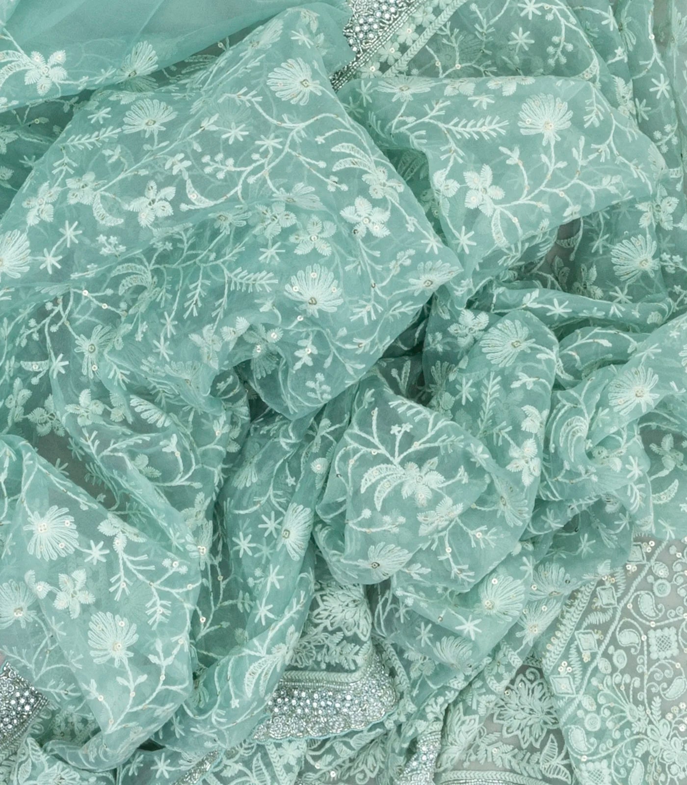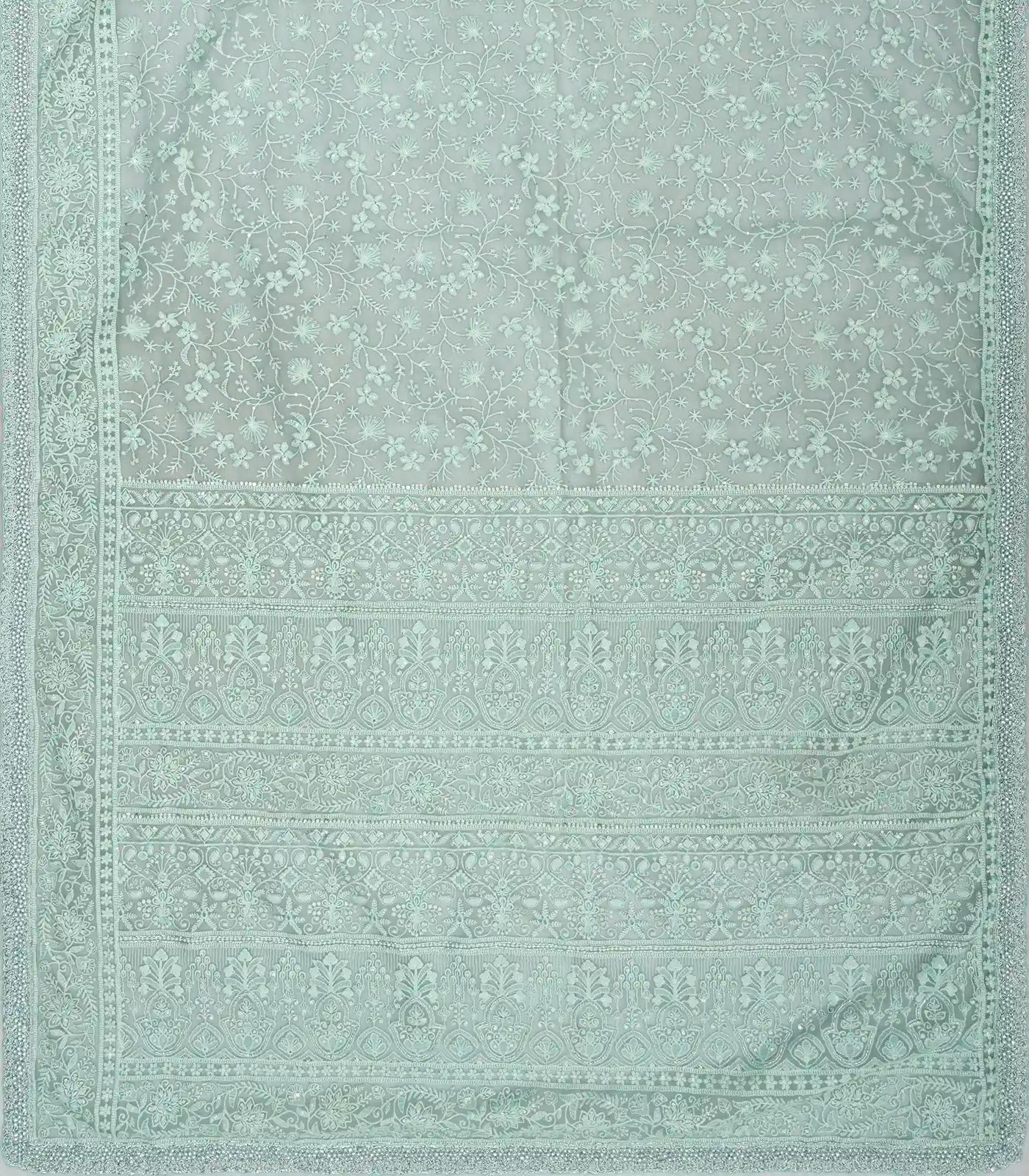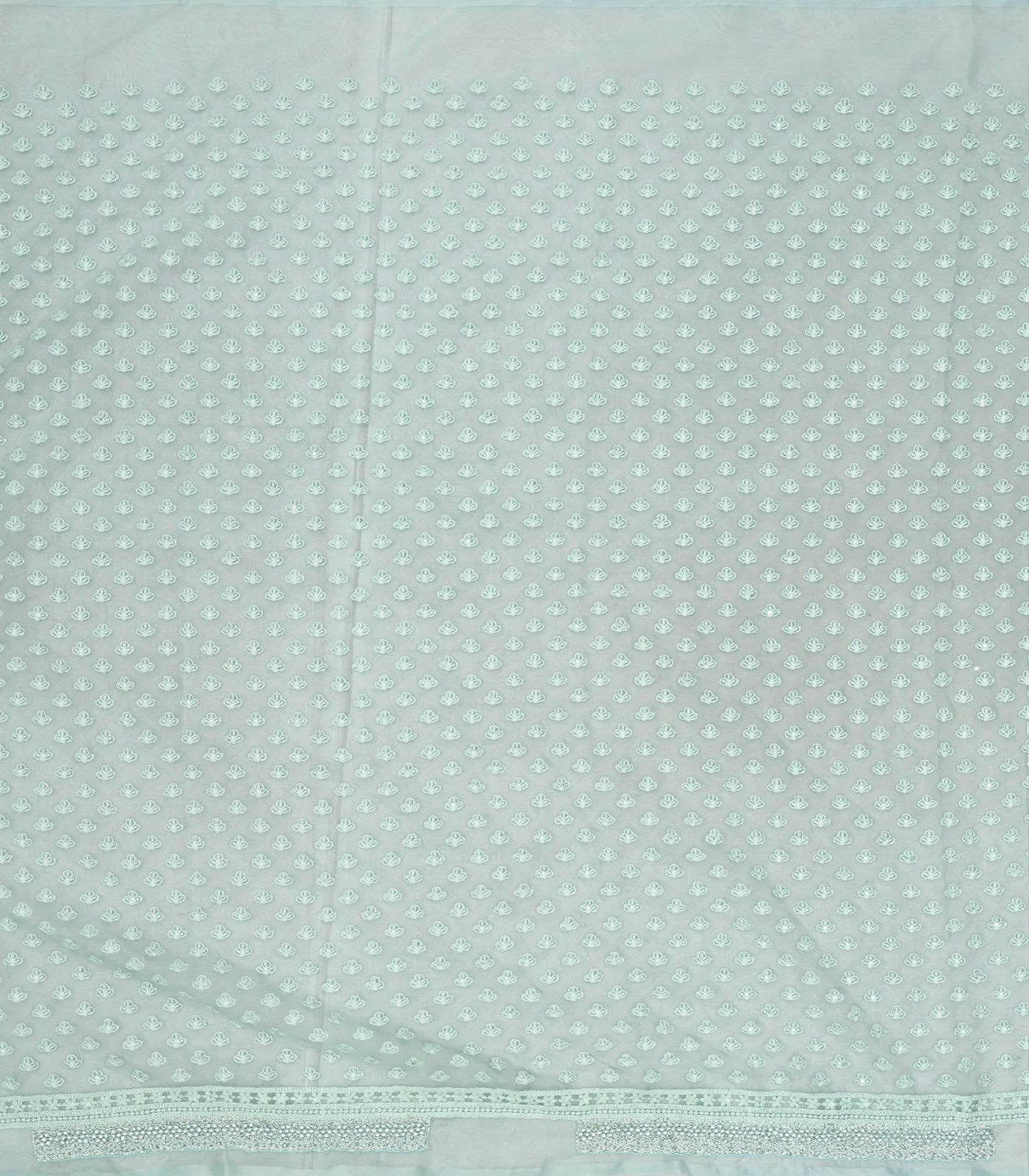 Turquoise Woven Organza Saree With Embroidered Floral Motifs-EN1689