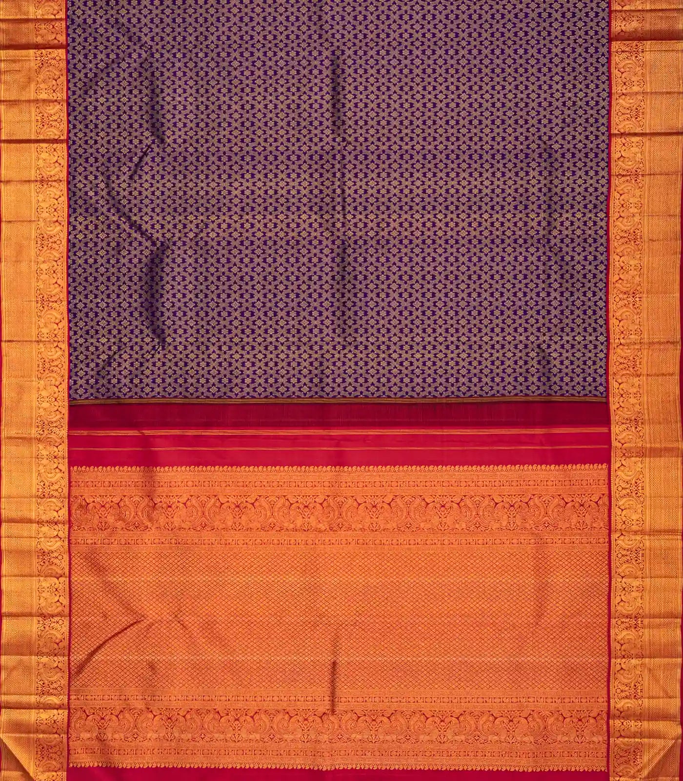 Violet Handloom Kanchipuram Korvai Silk Saree With Floral Motifs-Violet
