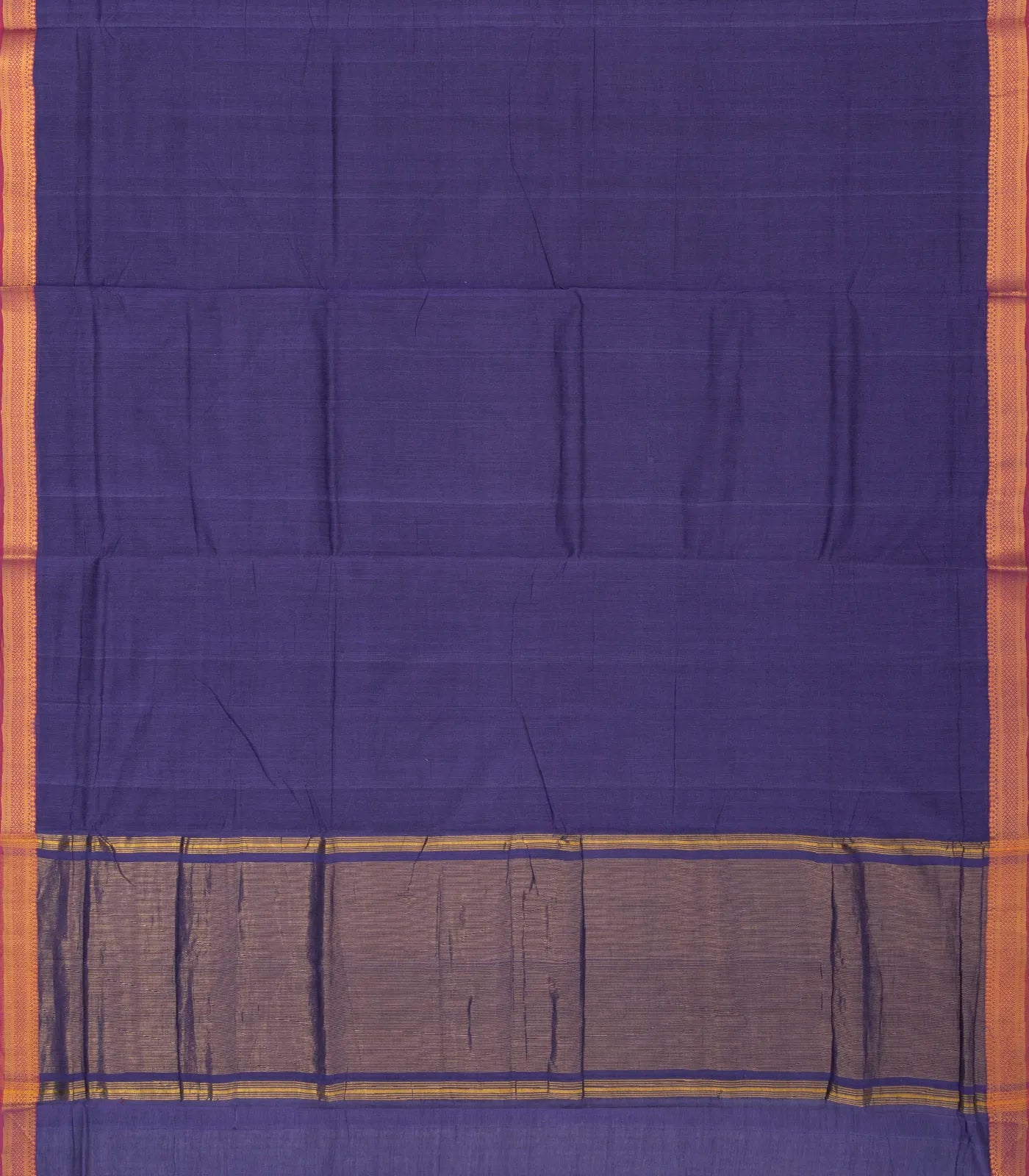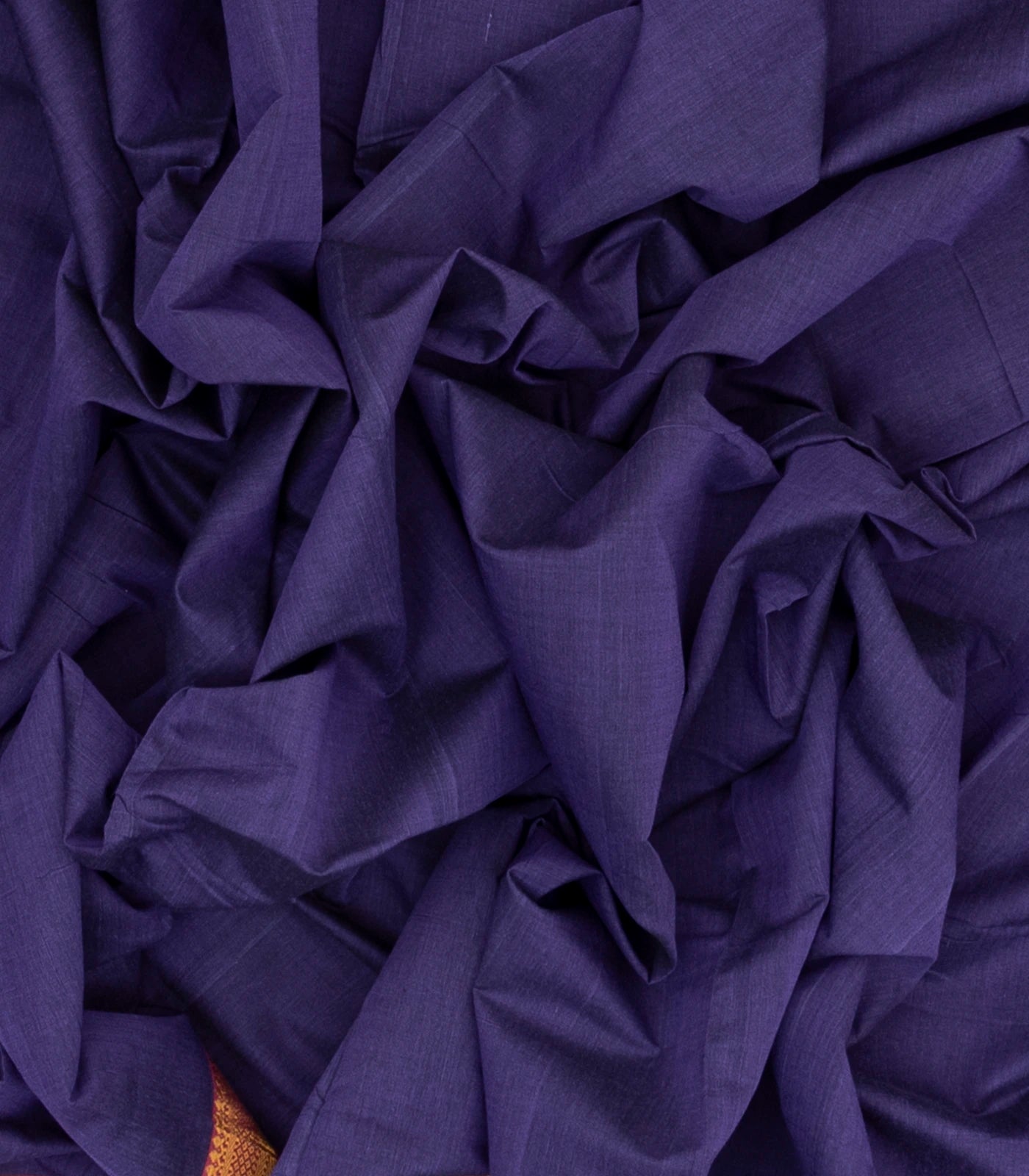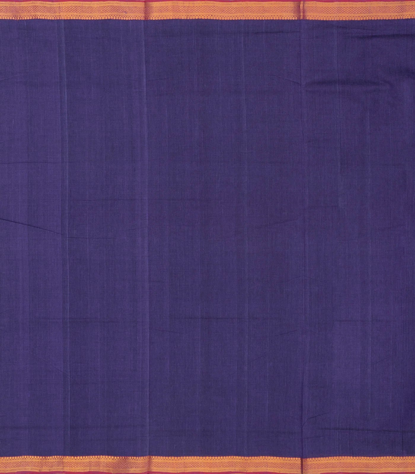 This handwoven mangalagiri cotton saree is filled with plain violet body along with contrast zari border and pallu
