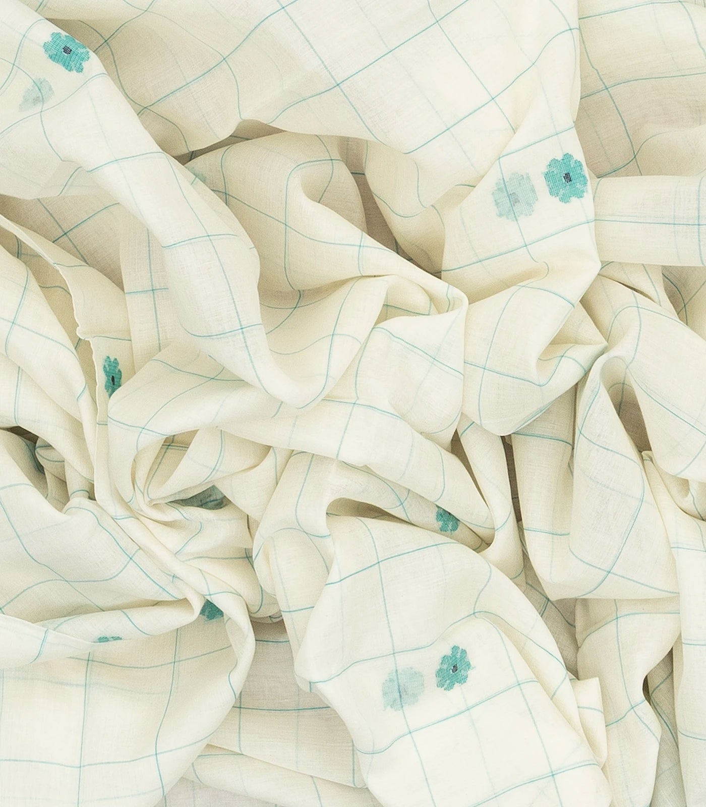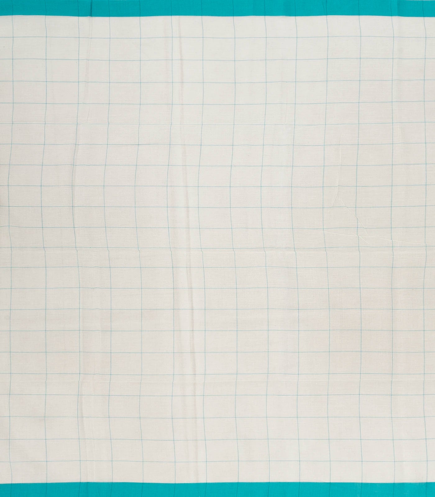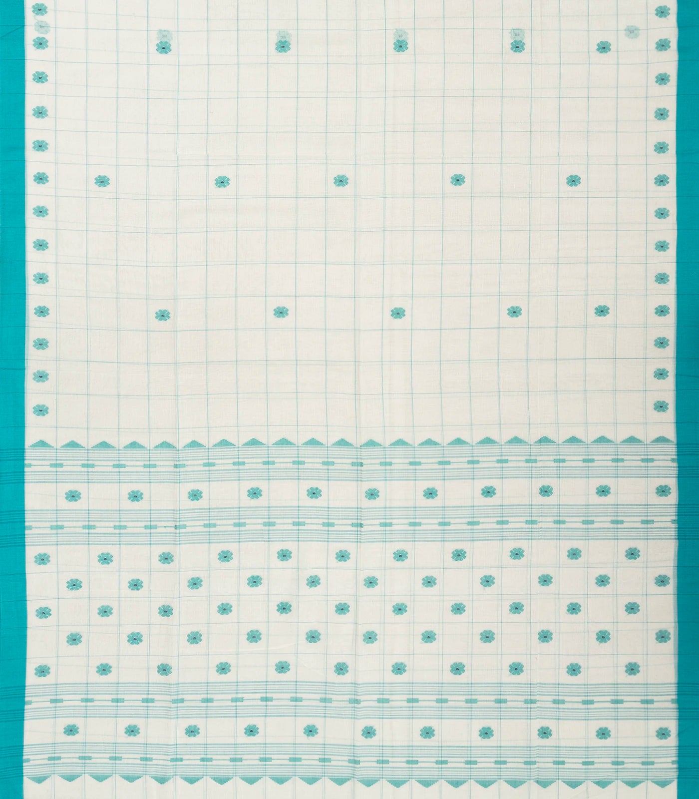 White Handloom Bengal Cotton Saree With Checks & Buttas-BG1315