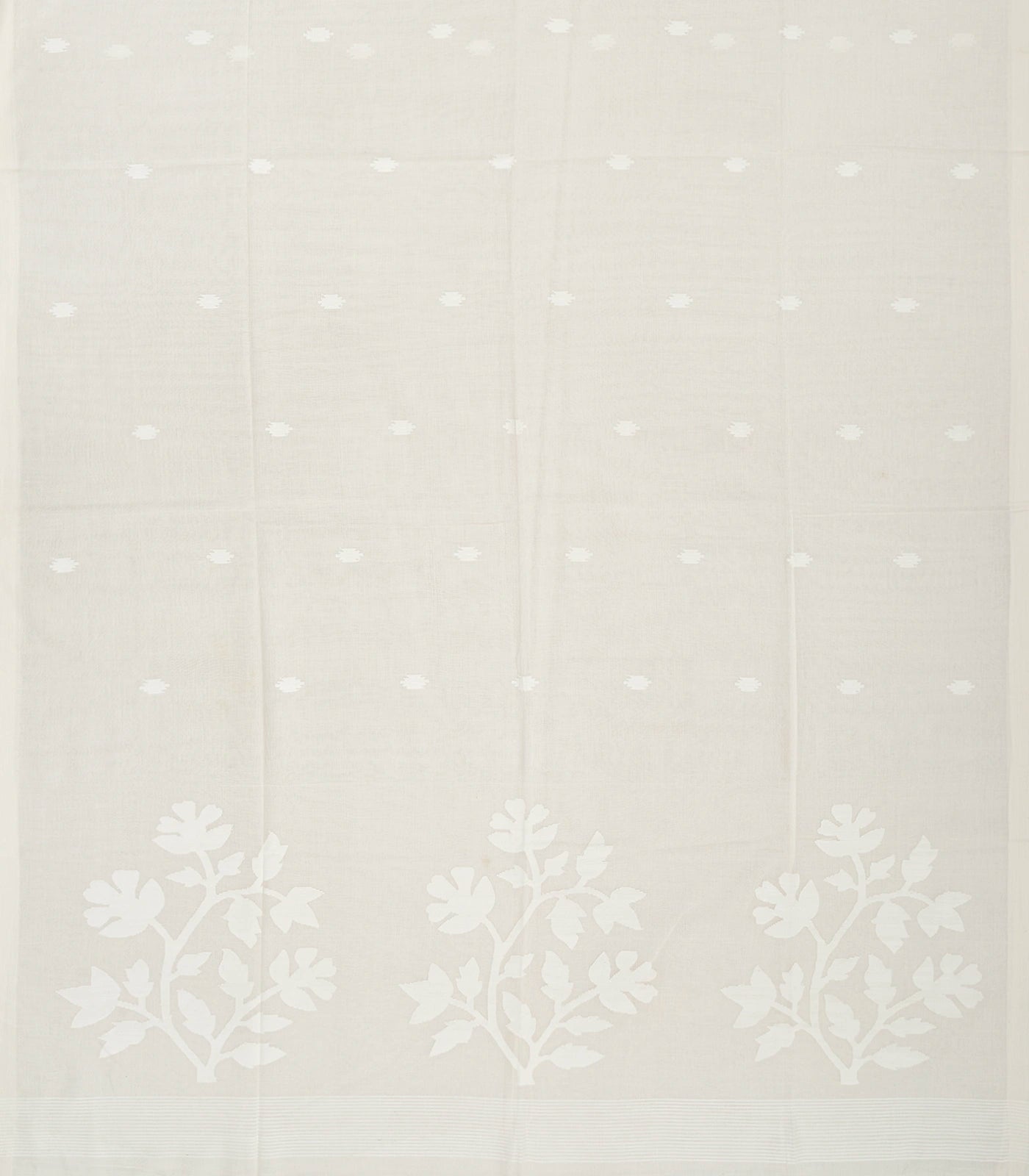 White Handloom Bengal Cotton Saree With Floral Pallu-BG1014