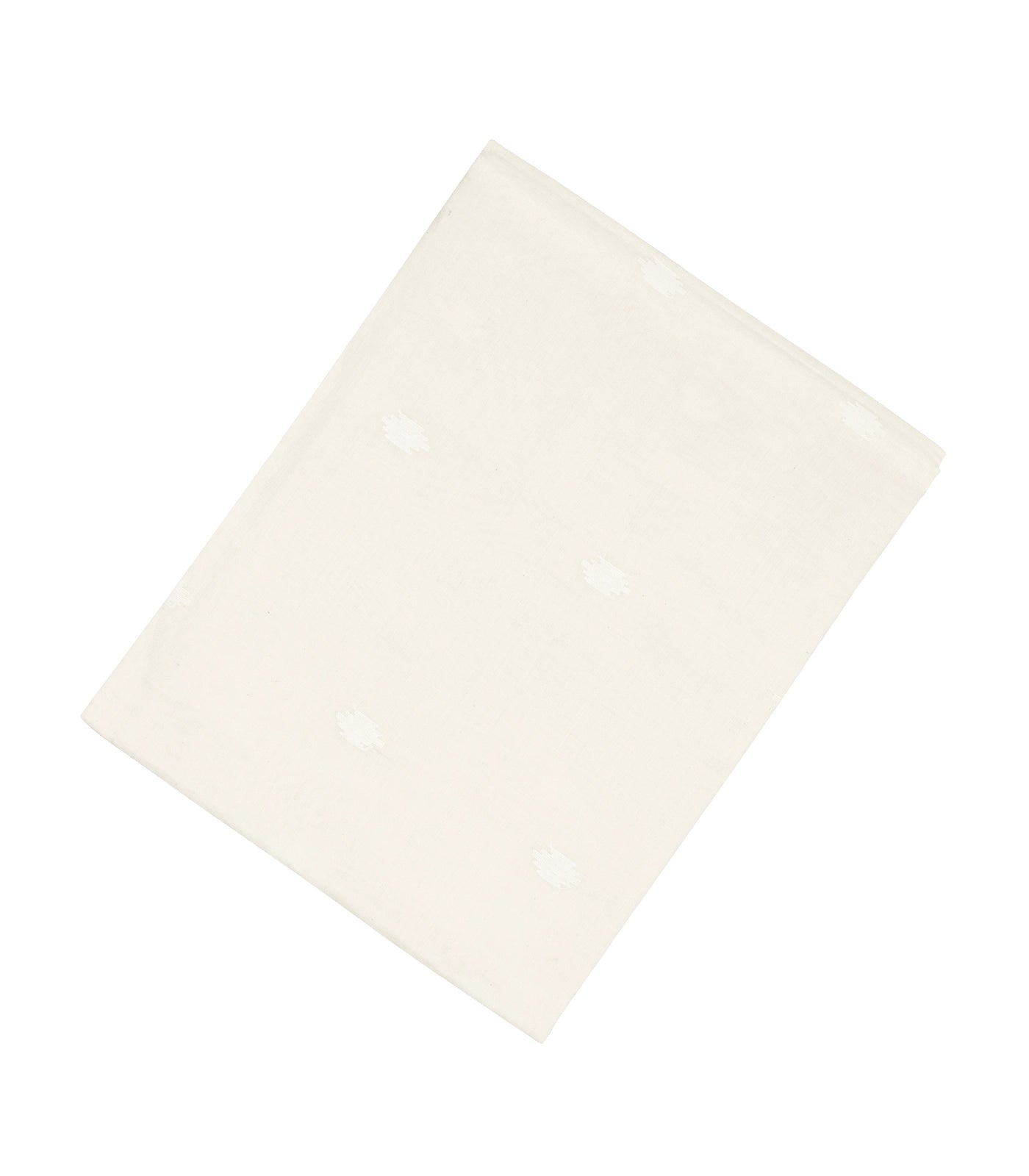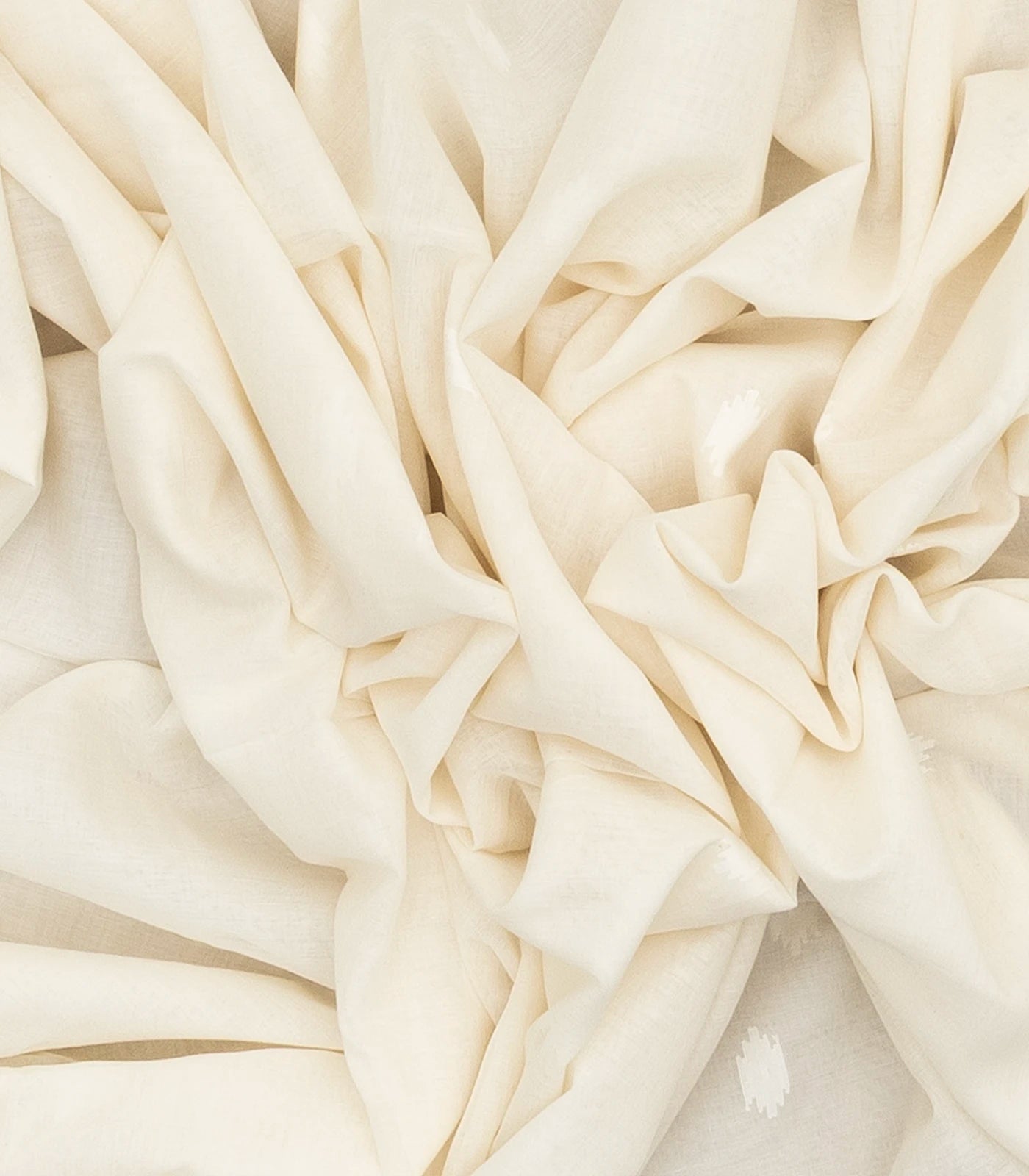 This handwoven bengal cotton saree with coin buttas in white body along with border and floral motifs in pallu