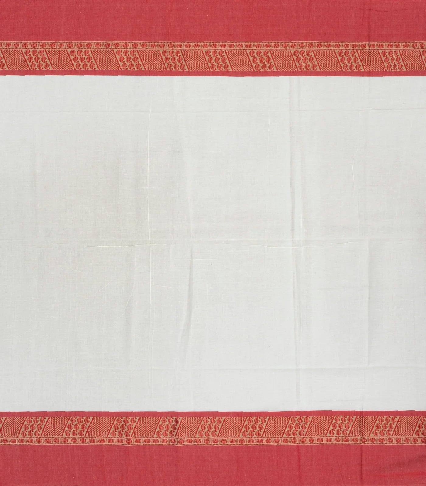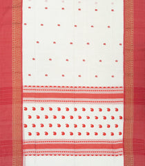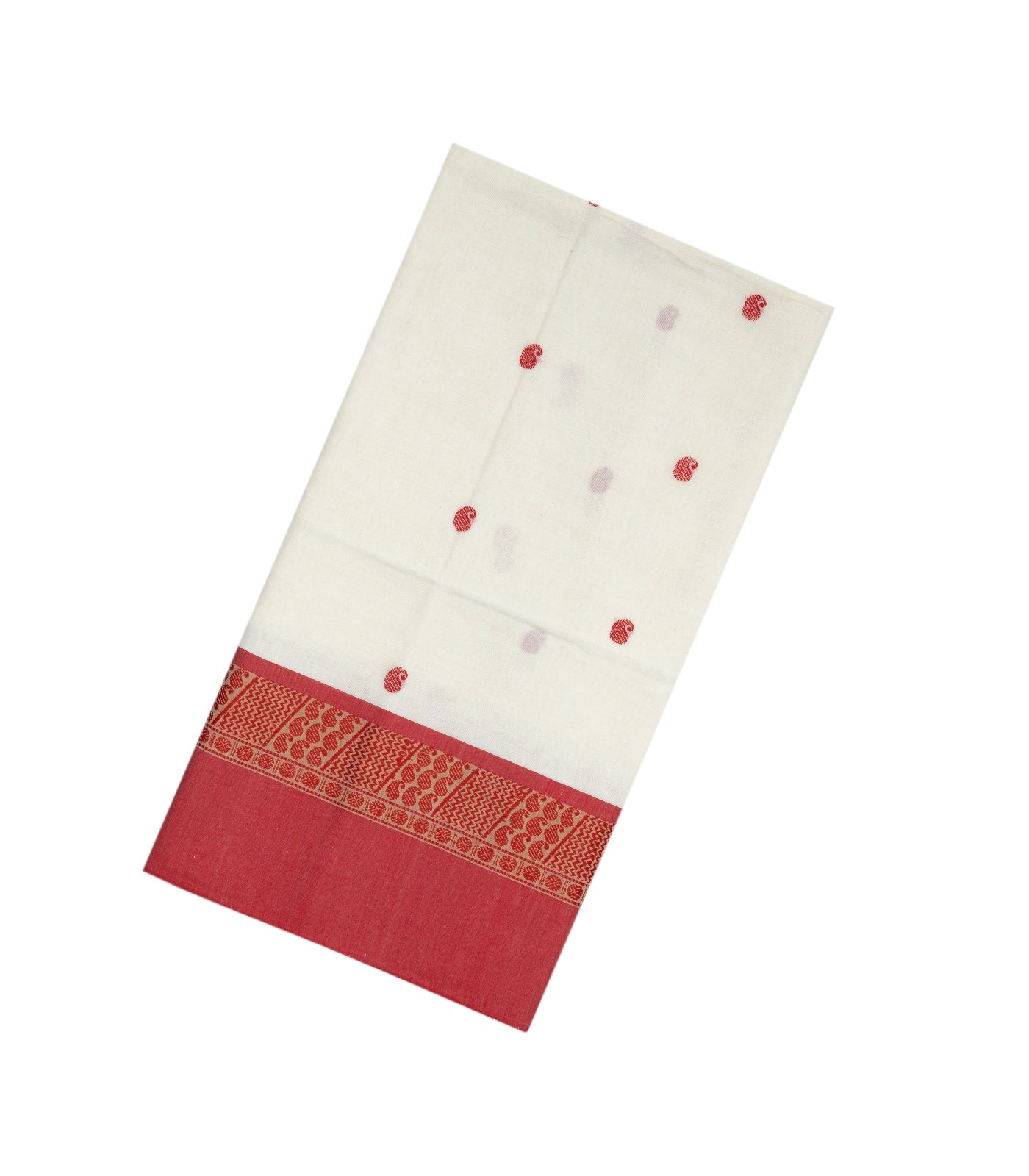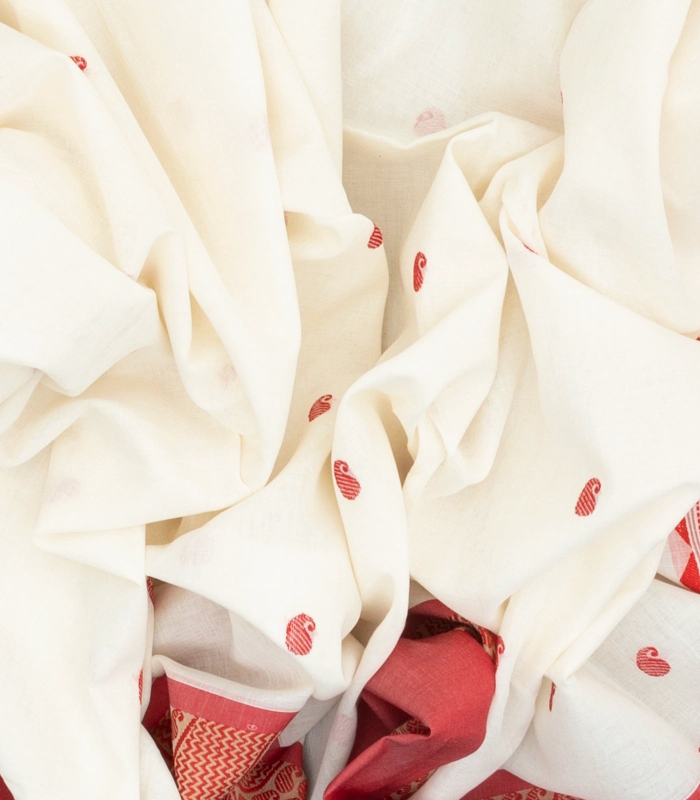 White Handloom Bengal Cotton Saree With Mango Buttas-BG1084