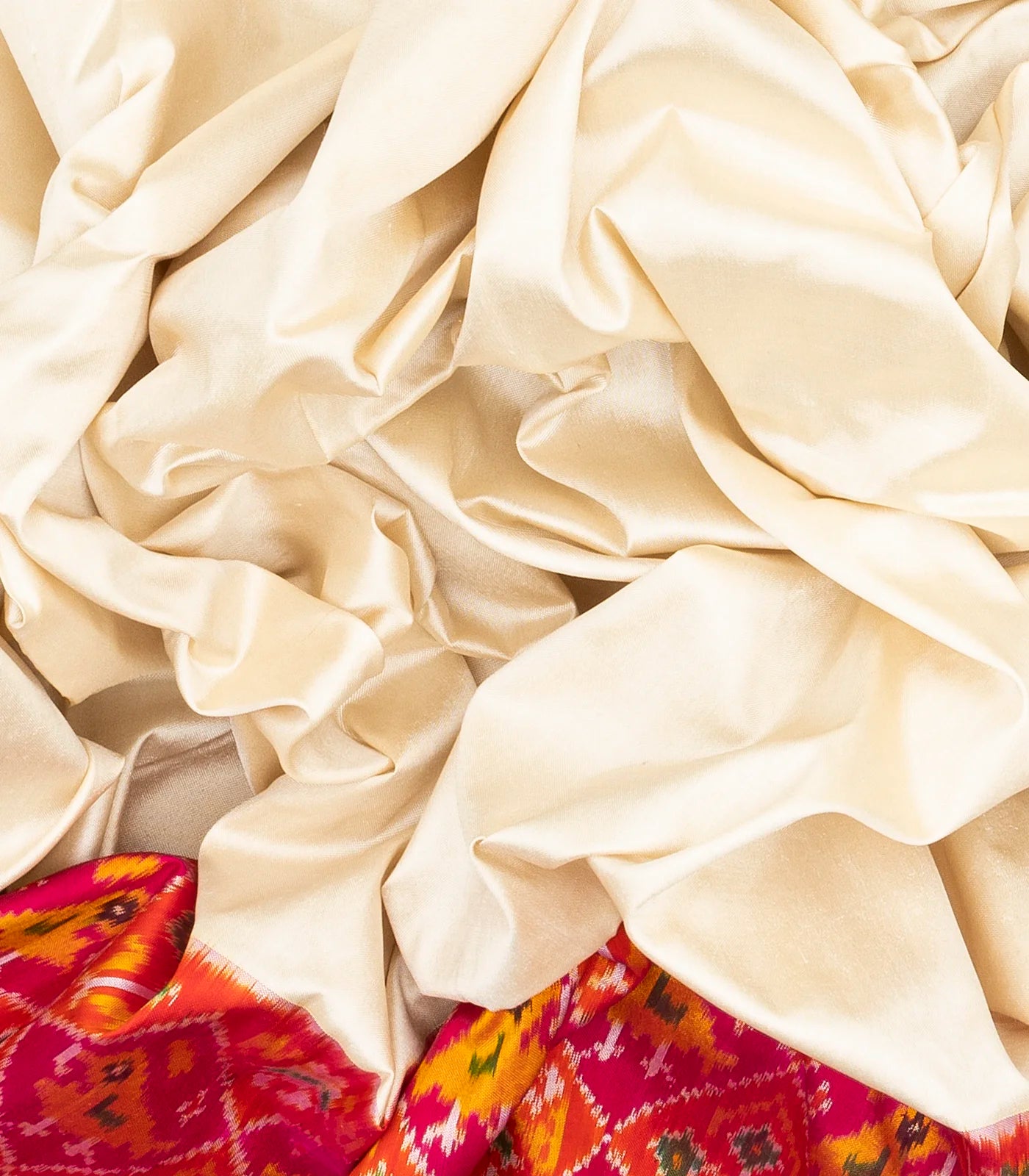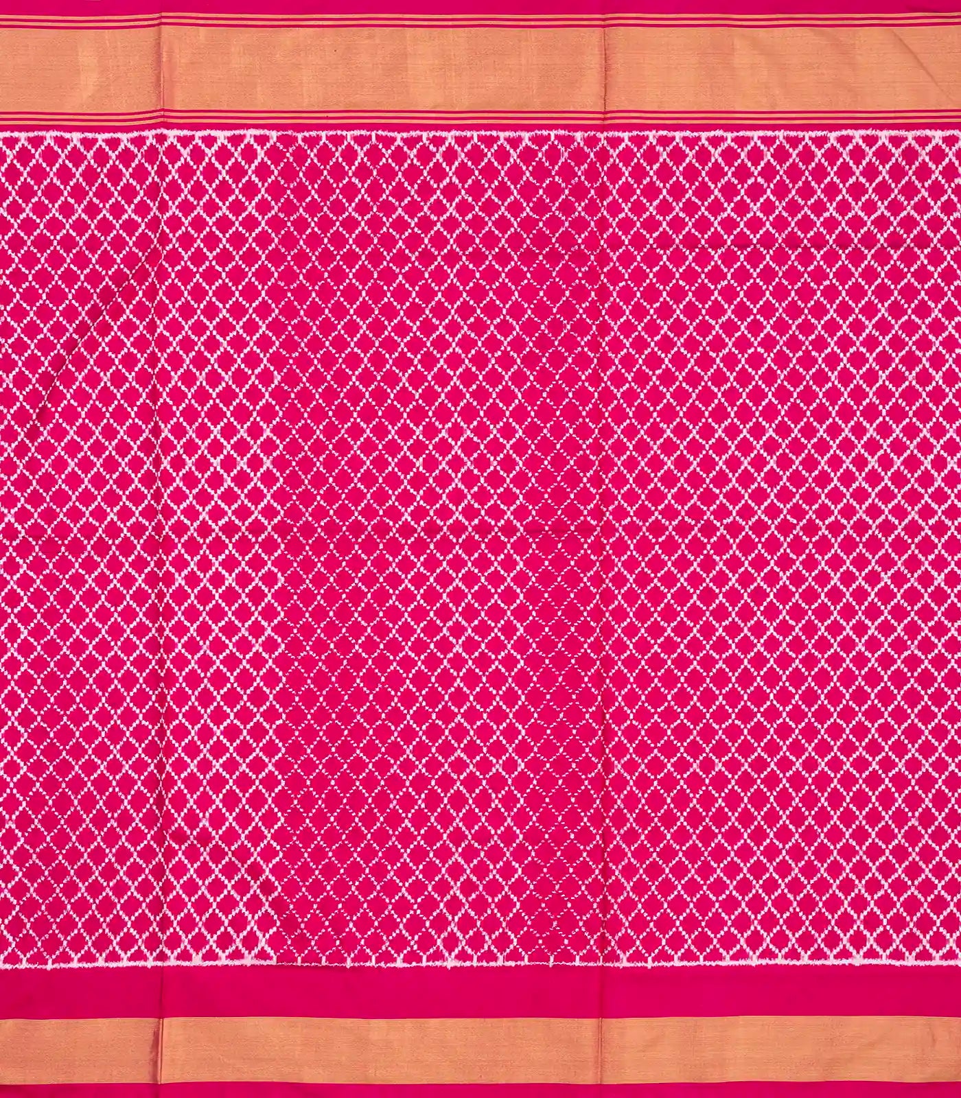 White Handloom Ikat Silk Saree With Contrast Pink Border